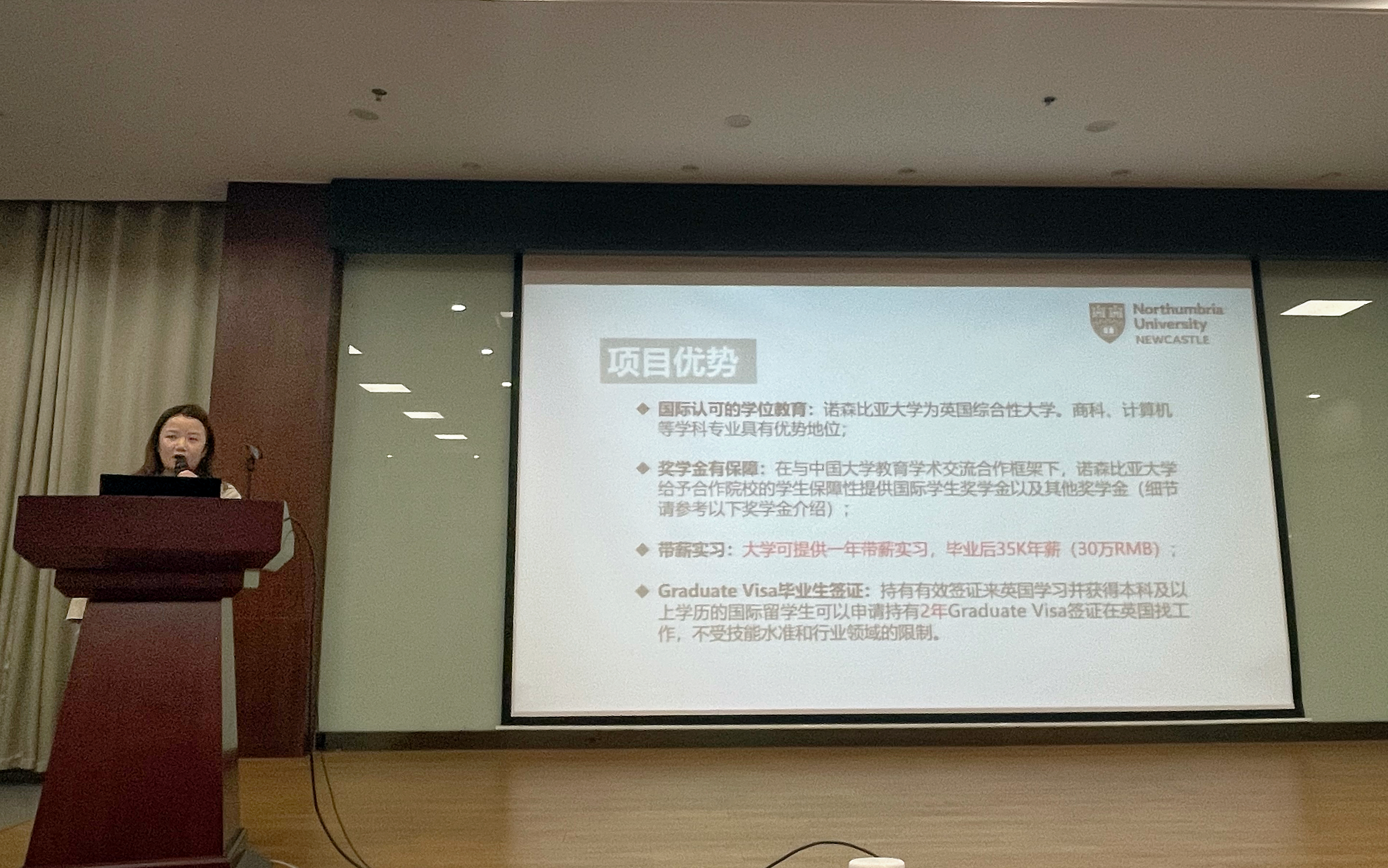 本场宣讲会介绍了英国威尔士三一圣大卫大学、英国考文垂大学、英国诺森比亚大学、英国伦敦大学城市学院、爱尔兰东南理工大学、俄罗斯沃罗涅日国立林业技术大学、俄罗斯沃罗涅日国立工程技术大学、欧洲应用科技大学等多所保荐硕士国外合作高校。各项目招生老师就项目内容、相关政策、课程设置、时间规划和申请流程等展开了详尽的分享,并与学生进行了面对面交流,热心地为学生答疑解惑。