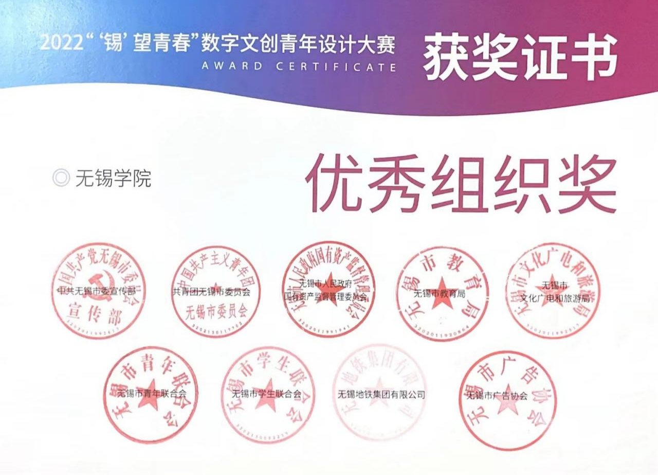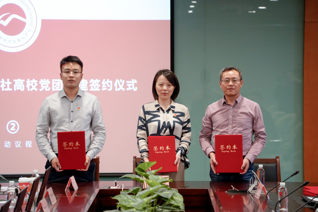 沈燕清宣布了2022年“‘锡’望青春”青年文创设计大赛获奖单位和个人,我校获得优秀组织奖、我院参赛学生获得三项个人奖。张启森为获奖单位和个人颁发了获奖证书。随后,我院代表郭新宇与无锡地铁资源开发公司代表朱丽莎签订了党团联建协议。