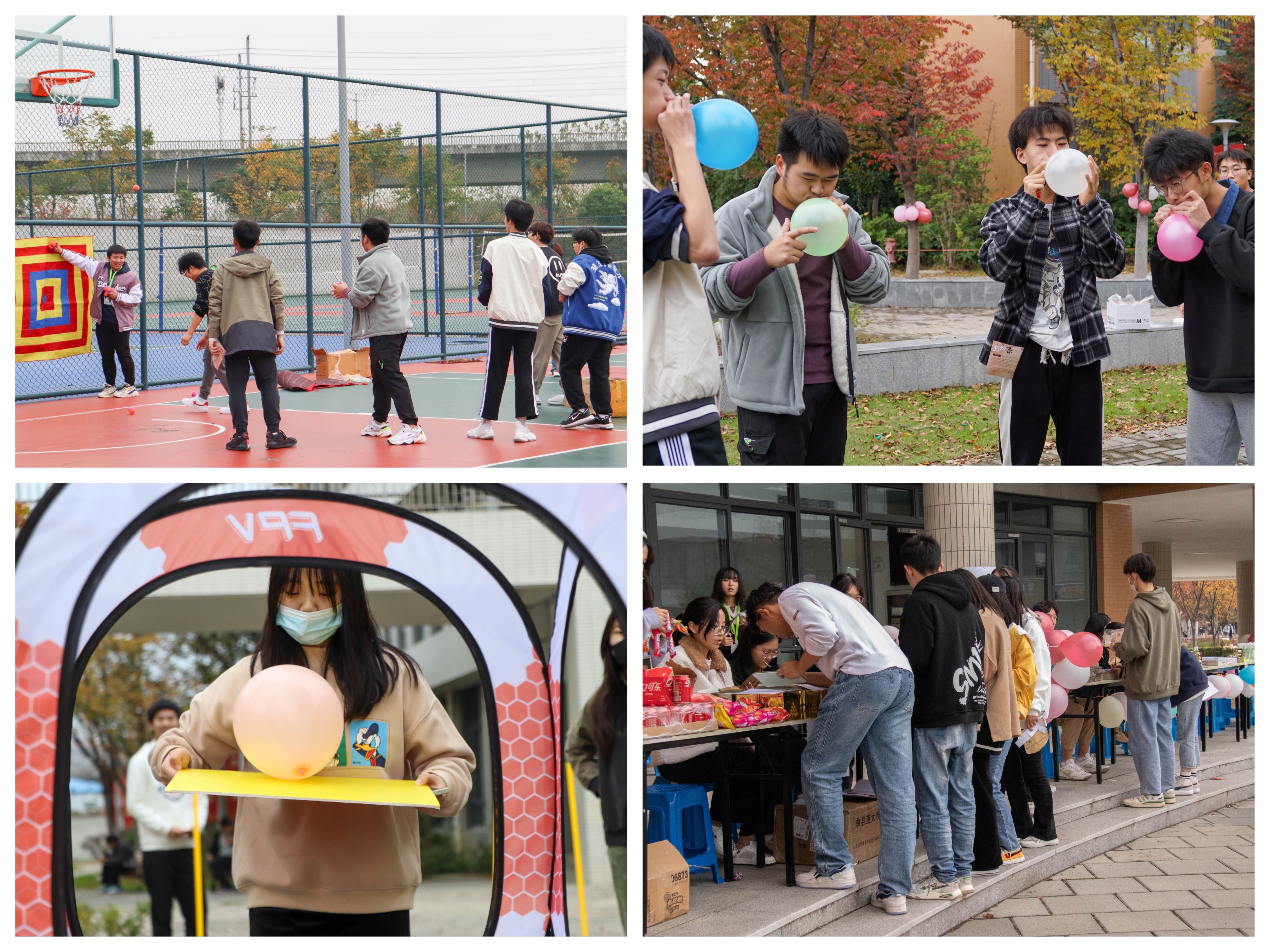 此次游园会活动结合“剧本杀”背景故事,通过火线冲击、车轮滚滚、吹压气球、皮球投篮、竞速呼啦圈、袋鼠跳、障碍跳、叠罗汉等趣味小游戏获得相应线索,最终完成剧本任务。为做好疫情防控,避免人员聚集,各游戏活动分别安排在校园不同地点开展。活动现场气氛热烈,同学们在游戏中通过自助互助加强了彼此间的交流与沟通,增强了团队意识和协作精神,展现了积极昂扬、朝气蓬勃的精神风貌。
