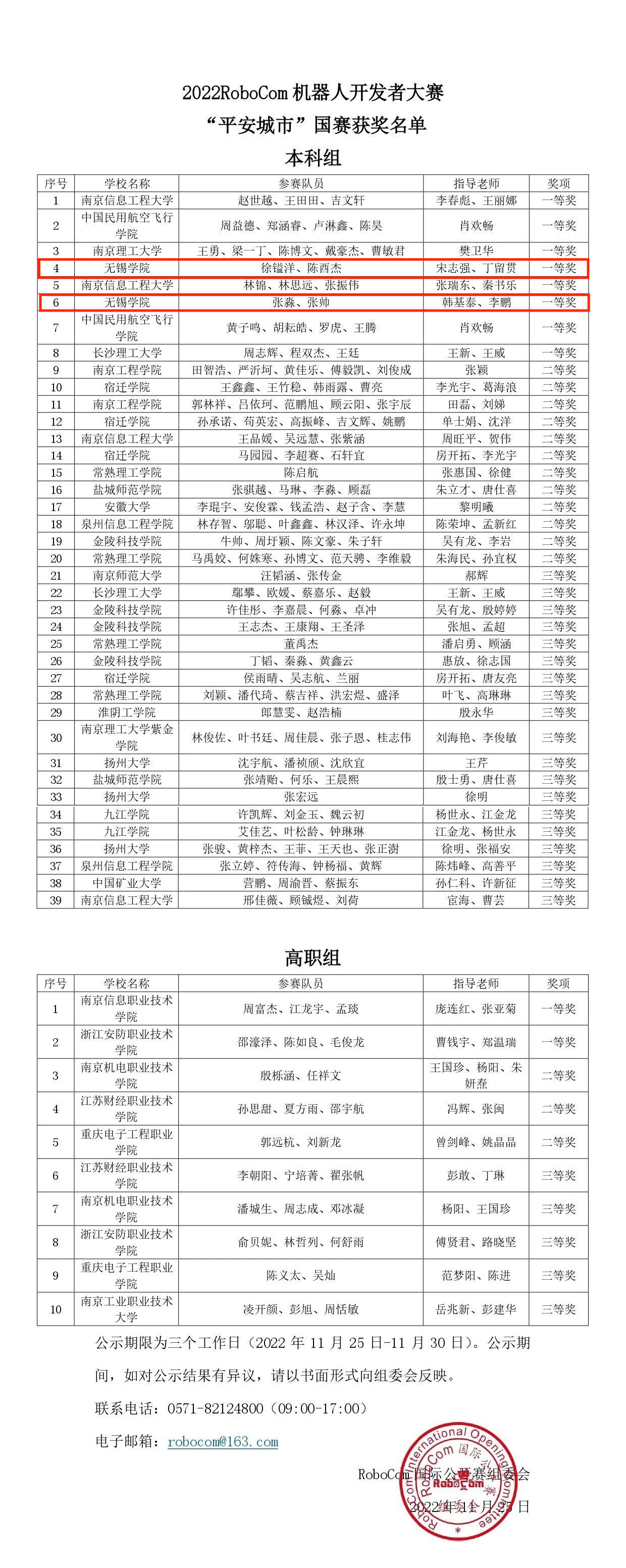 RoboCom机器人开发者大赛由工业和信息化部人才交流中心、RoboCom国际公开赛组委会联合主办,是推动产业细分应用、协同高校学科建设、推动行业创新发展和产业人才梯队建设的全国性学科竞赛,设有CAIR工程竞技赛道、CAIA数字创意赛道、CAIP编程设计赛道、信息技术与工程创客赛道等四个赛道,是我国机器人及人工智能创新领域综合类规模大、参与院校多、影响广的权威赛事。我校自动化学院从今年6月份开始组队,经过几个月的培训与训练,最终选拔了7支队伍参加了10月份的省赛选拔赛,最终获得省赛一等奖1项、二等奖1项、三等奖4项、优秀奖1项。获得一等奖和二等奖的队伍顺利入围全国总决赛,并在总决赛中表现优异,全部获得了国赛一等奖的好成绩。