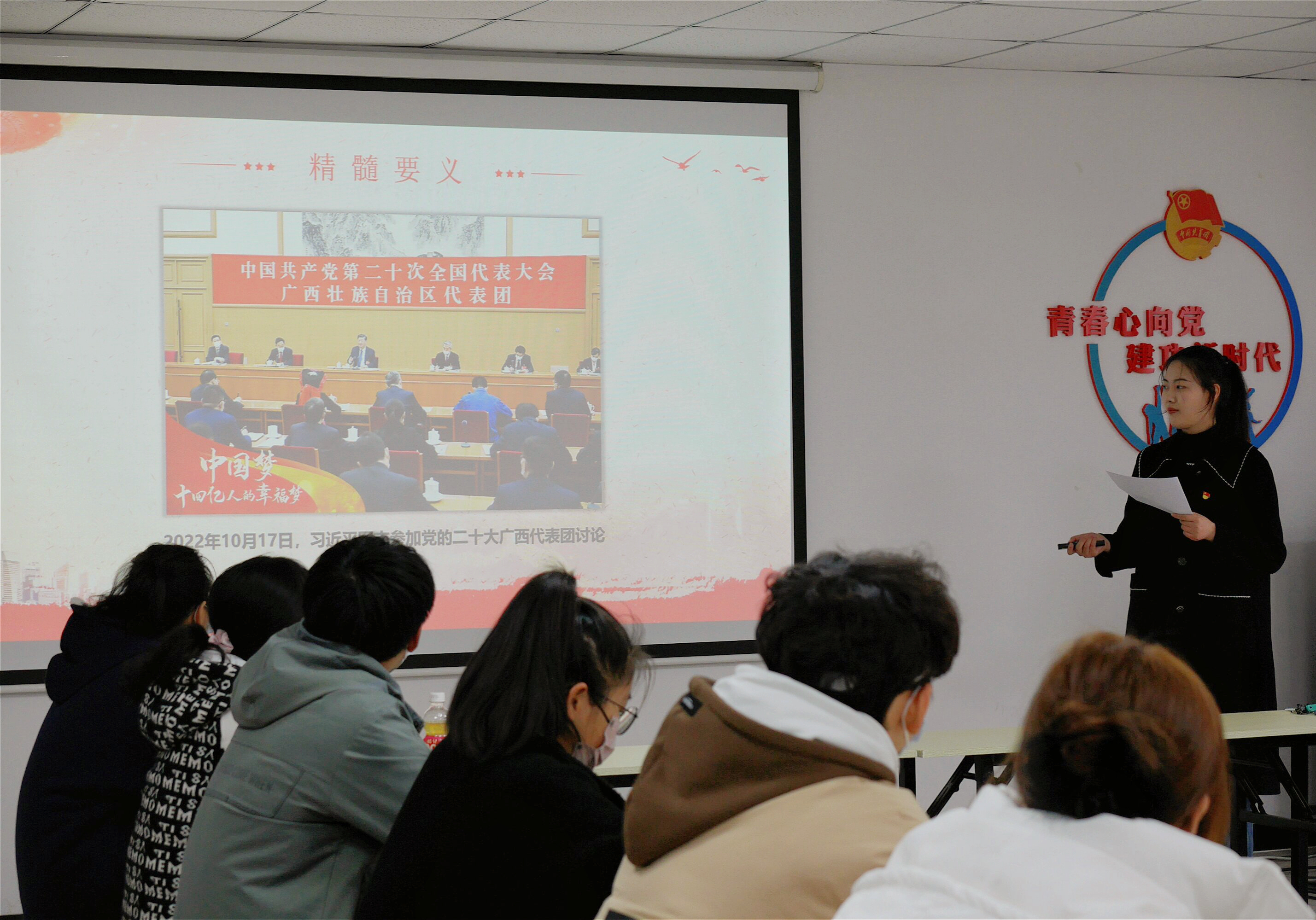 为深入学习宣传党的二十大精神,12月7日下午,我校青年学习社在大学生活动中心305室开展主题宣讲活动。本次活动由校团委钱静老师主持,青年学习社全体学生参加本次活动。