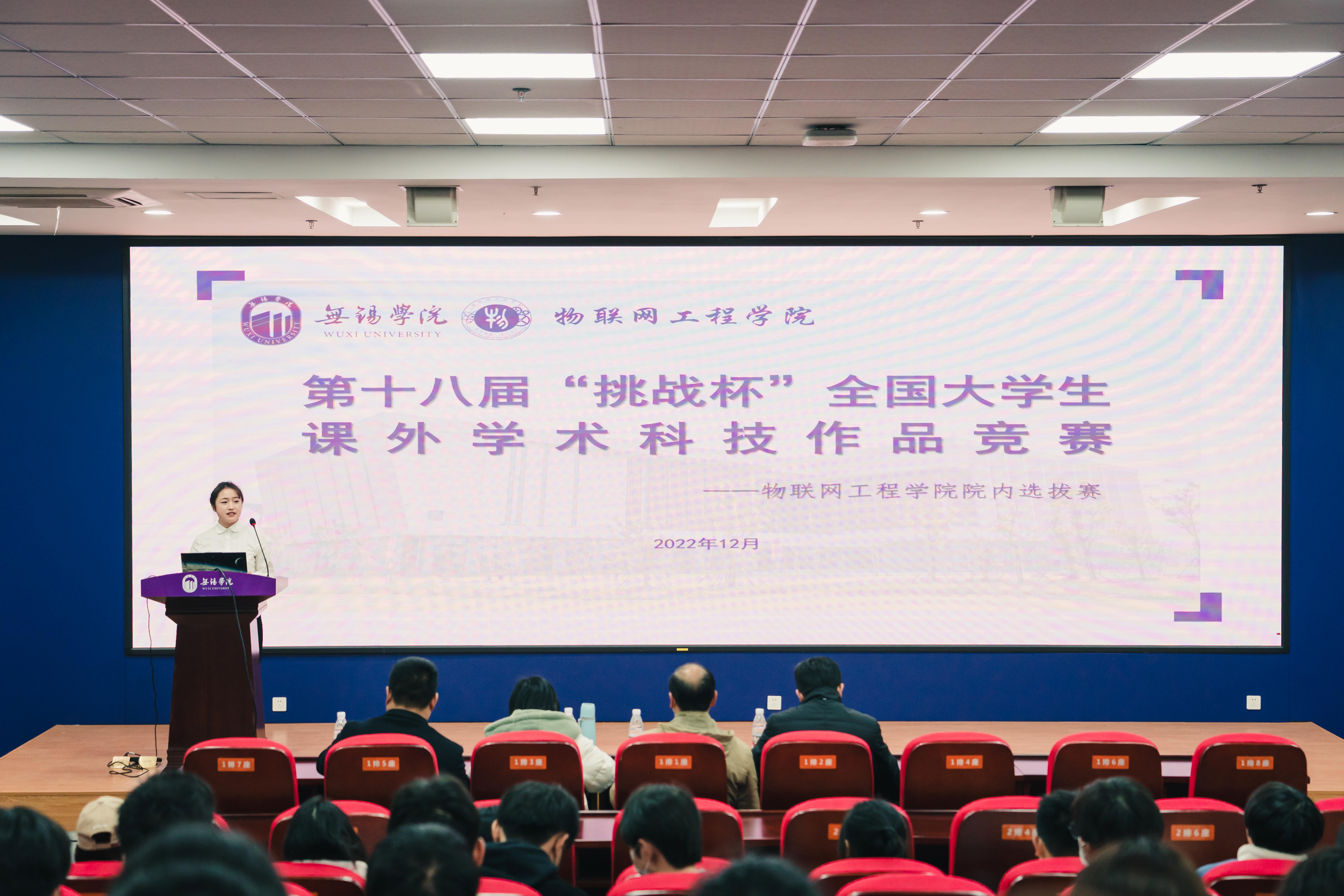 为全面深入学习贯彻党的二十大精神,深入实施科教兴国战略、人才强国战略、创新驱动发展战略,进一步激发青年学生树立科创报国的远大理想,围绕学校应用型大学建设和高素质创新型人才培养,不断深化实践育人,培养学生科技创新意识、激发创新精神,锻炼实践能力。12月7日下午,物联网工程学院于科创楼205举办第十八届“挑战杯”全国大学生课外学术科技作品竞赛院内选拔赛。物联网工程学院周海华、刘伟、施珮和陈祺东出席并担任评委。