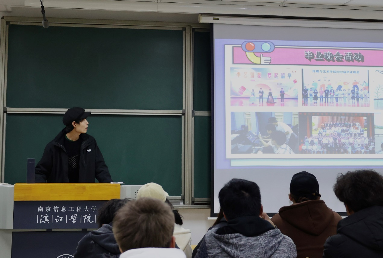 国家励志奖学金获得者、20级数媒3班的马泼从学生活动组织方面向同学们介绍“毕业欢送会活动”“志愿服务活动”“班级建设活动”等各类活动组织策划经验,鼓励同学们主动参与集体活动、积极投身活动组织工作,锻炼和提升组织协调能力。
