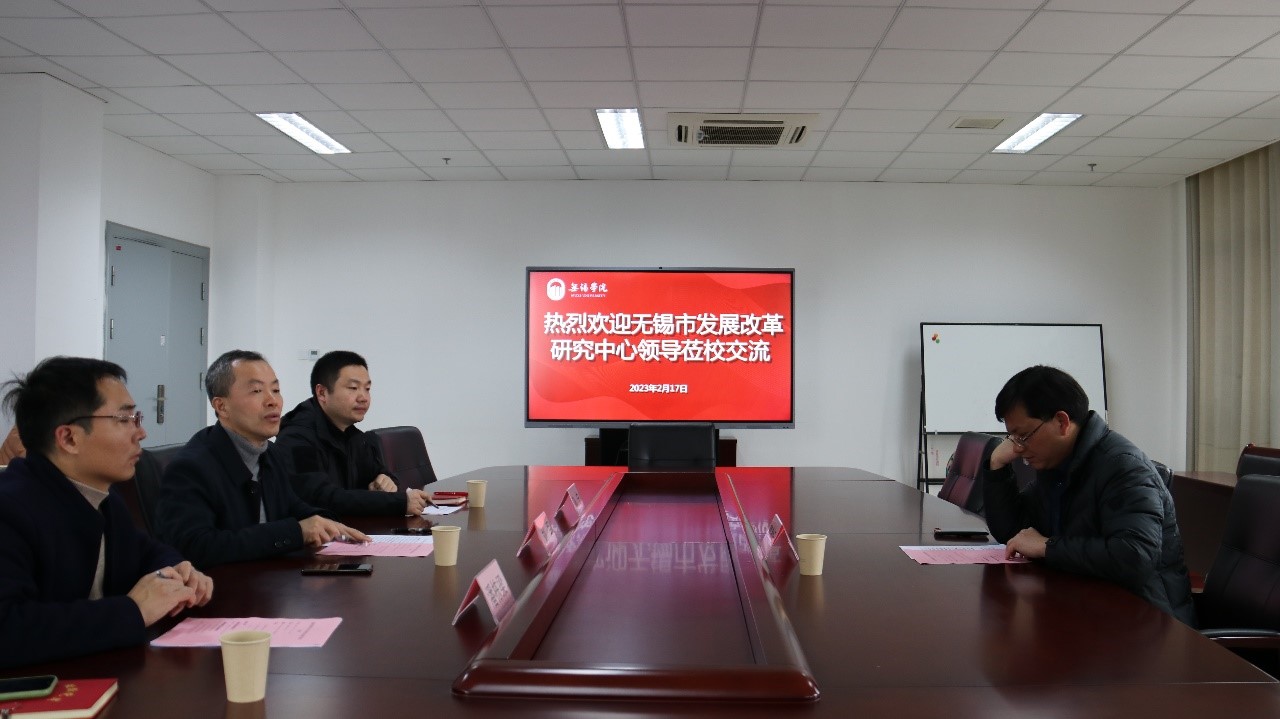 曹建标充分肯定了学院在各个方面取得的成绩,认为学院发展方向紧密结合无锡产业发展需求,定位准确。他简要介绍了无锡市发展改革研究中心的历史沿革、组织架构、研究工作重点、成果产出等情况。他表示,愿意与数字经济与管理学院开展合作,并希望在联合调研、课题研究、专报撰写,以及共同举办学术会议,加强科研平台建设等方面共同发力,共同加强智库建设,共同为无锡经济社会高质量发展贡献力量。(数字经济与管理学院/文:任作琳,图:鲍文君;审核:刘军)