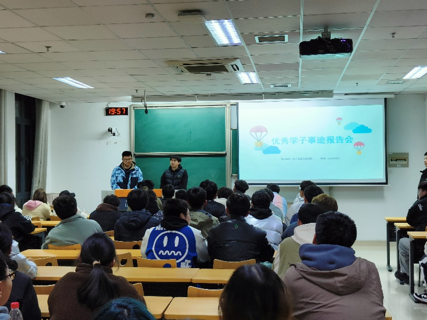 童天宇同学结合自身的学习经历向大家介绍了学业及科研等方面的心得,让同学们受益匪浅;肖阳同学分享了自己在学习和学生工作中的经历,劝导同学们珍惜当下,脚踏实地,坚持不懈,以自身为例为大家带来了满满正能量。