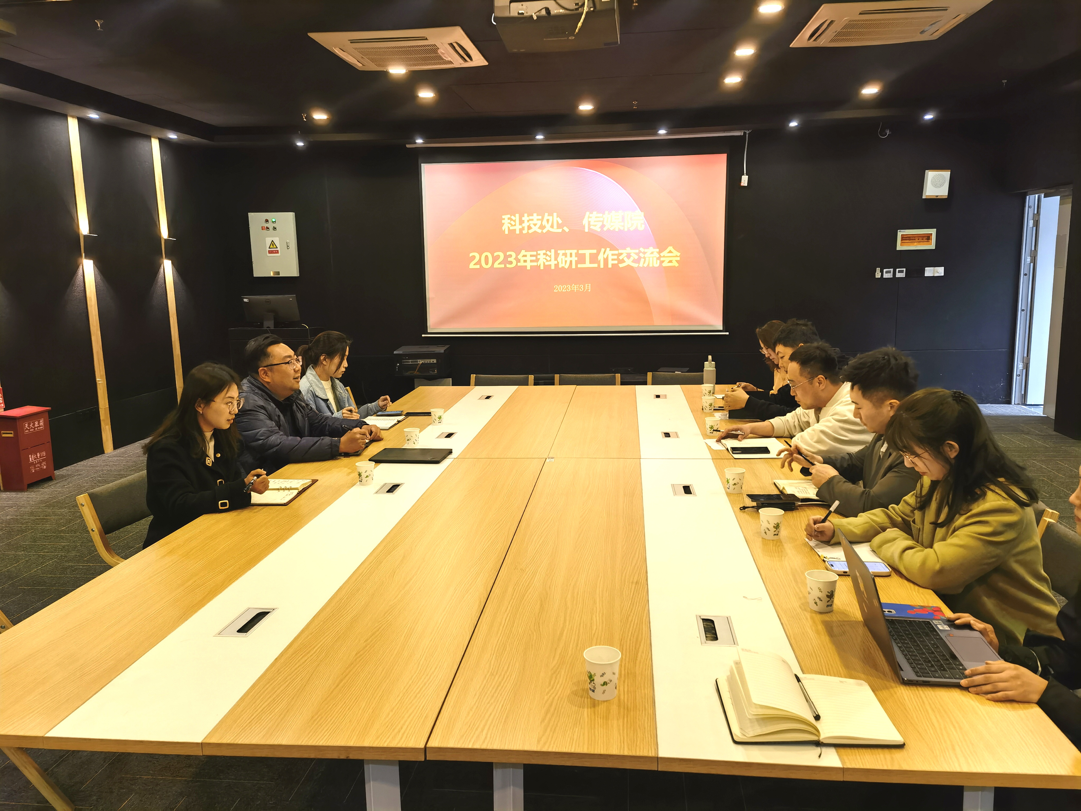 延星对传媒与艺术学院近期取得的科研工作成绩给予了充分肯定,并围绕学校产教融合“1+5”战略工程重点主题与学院主干教师就学院科研工作目前存在的主要问题及组织谋划科研项目和成果的具体举措展开了深入的探讨交流。