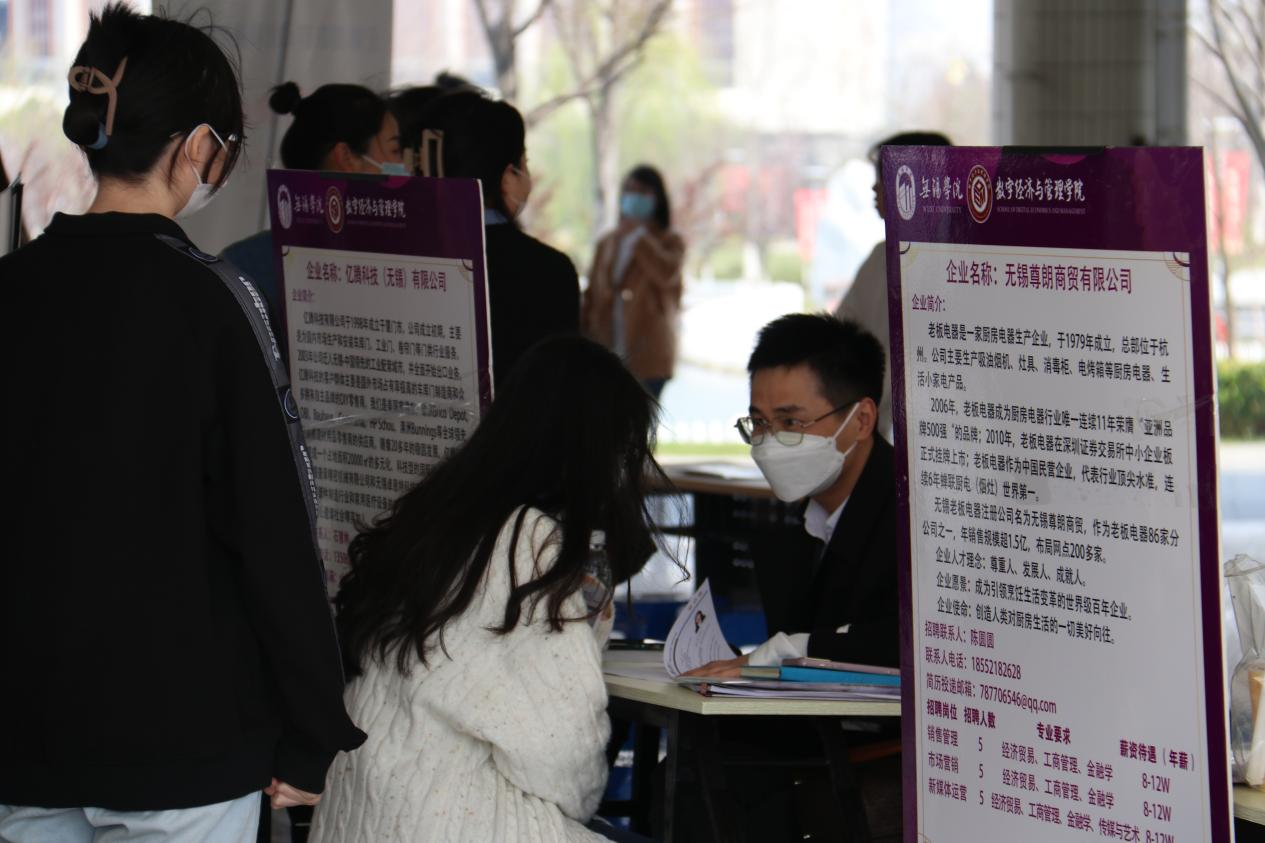 参加本次招聘会的有国联证券股份有限公司、无锡农村商业银行股份有限公司、招商银行股份有限公司无锡分行、无锡中远海运物流有限公司、无锡市顺丰速运有限公司、雅迪科技集团有限公司等50多家优质企业,共提供150个岗位,招聘人数达1241人,涉及金融、国贸、财会、英语、法学、自动化等多个专业。