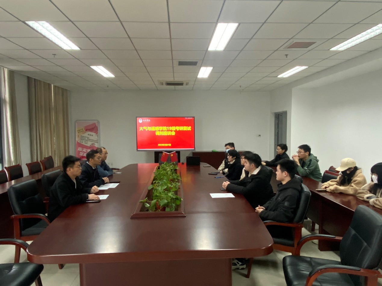 为帮助2023届考研学子更好地了解现阶段的考研调剂政策,尽快熟悉考研调剂流程,了解调剂流程和技巧、做好统筹规划与各阶段的工作安排。3月21日大气与遥感学院于尚善楼507会议室开展2023考研调剂座谈会。座谈会特邀大气与遥感学院院长卢楚翰、教工党支部书记刁一伟、辅导员张国宇以及大气科学、安全工程、遥感测绘等专业的8名考研学子参加。