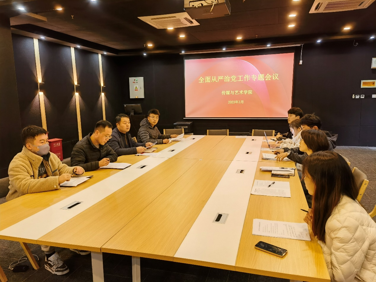 3月23日下午,传媒与艺术学院在尚诚楼110召开全面从严治党专题会议,深入学习党的二十大精神,认真贯彻落实上级纪委全会和学校全面从严治党工作会议精神,分析研判形势,安排部署2023年全面从严治党工作。传媒与艺术学院党总支负责人李步浩出席会议并讲话,副院长刘棠主持会议,院党总支纪检委员、分团委书记郭新宇及全体教职工参加会议。