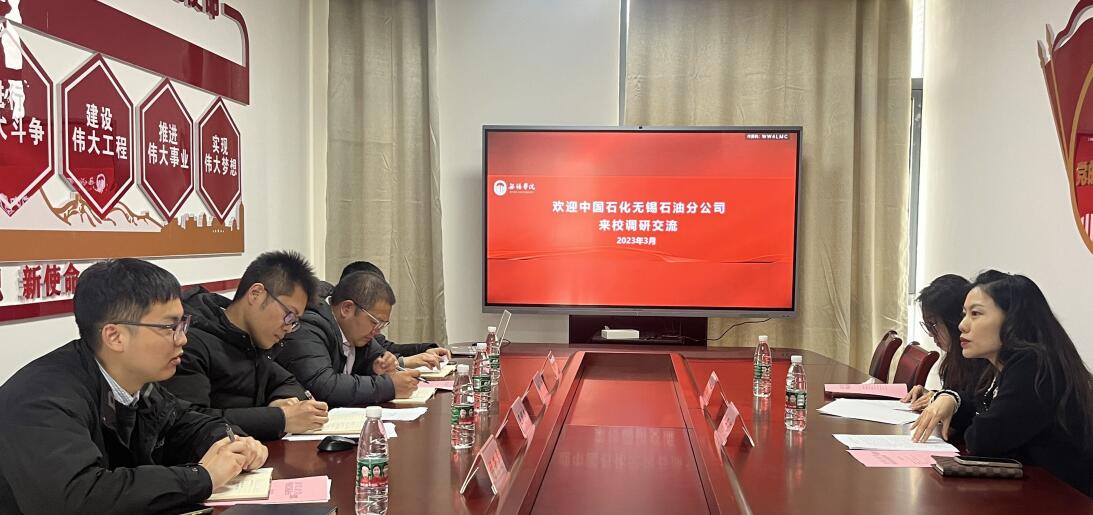 3月24日下午,中国石化销售股份有限公司江苏无锡石油分公司人力政工部负责人沈丹婷,党群纪检部负责人王春雨一行来校交流。自动化学院党总支副书记王明杰、机械电子工程系主任蒋亮及学院辅导员参加了交流座谈会。