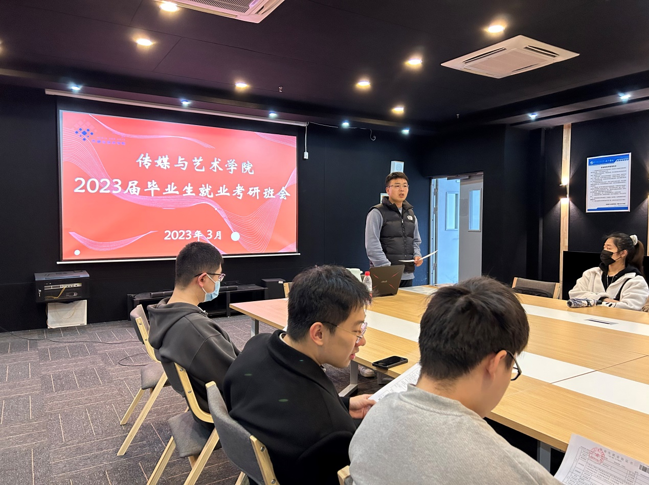 为帮助学生树立正确择业观,推动毕业生更加充分、更高质量就业,为毕业生提供精就业考研复试指导, 3月22日下午,传媒与艺术学院在尚诚楼110召开毕业生就业考研推进会议,分团委书记郭新宇及2019级全体同学参与会议。