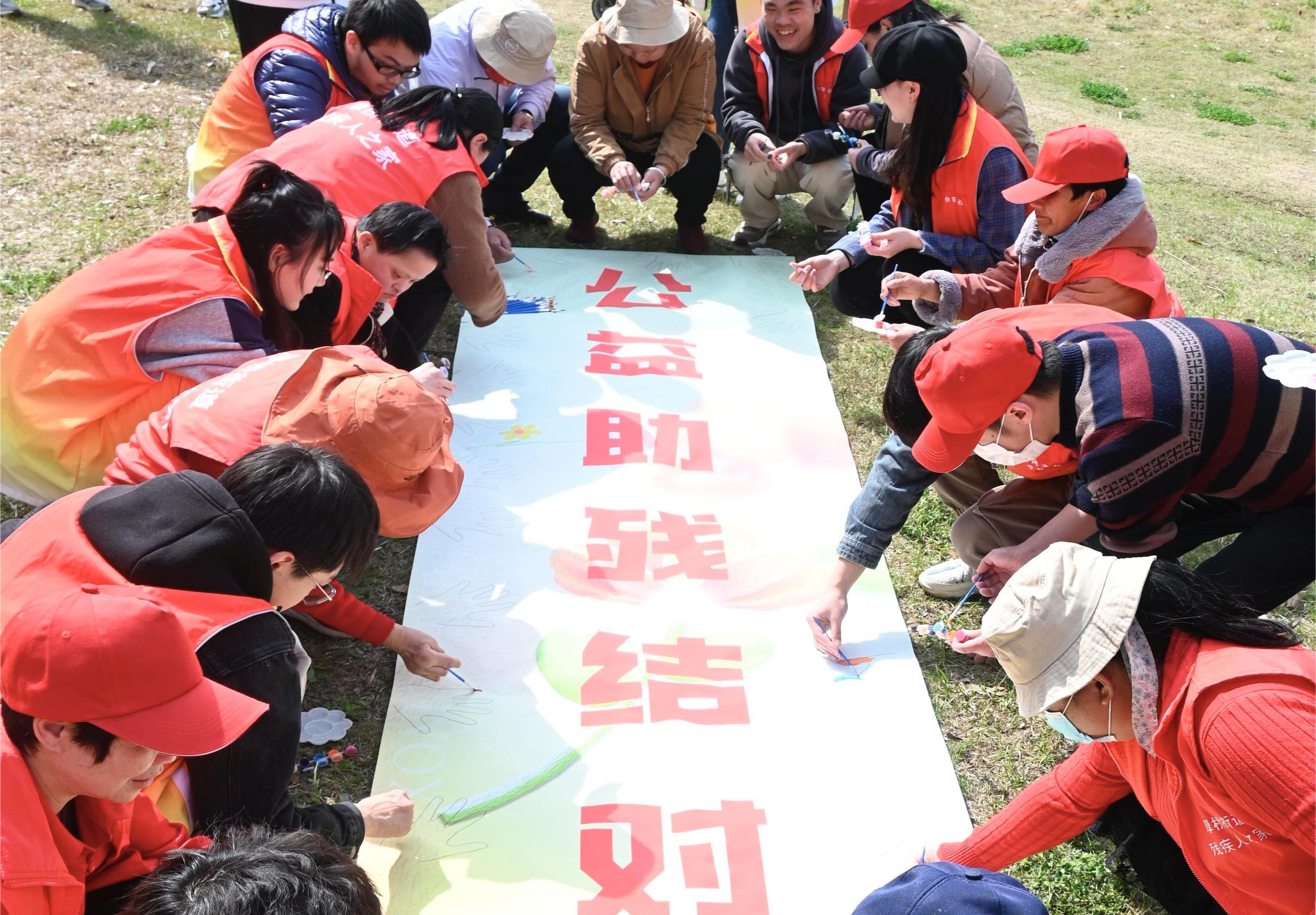 活动开始,党员志愿者和残疾人一同从残疾人之家出发徒步前往宛山湖湿地活动现场。到达目的地后,每位活动参与人员先进行了自我介绍,并组建了“一对一”结对帮扶小组,大家热情洋溢,先后进行“你是我的眼”、“我是神投手”、“春日摄影”等趣味小游戏。游戏结束后,志愿者和帮扶对象一同坐到草地上休息,陪他们唠家常,帮其疏解生活中的压力。