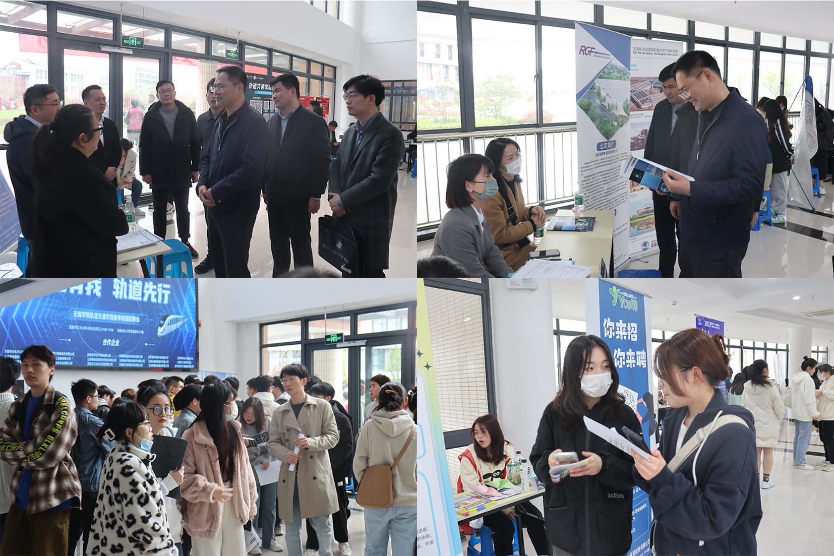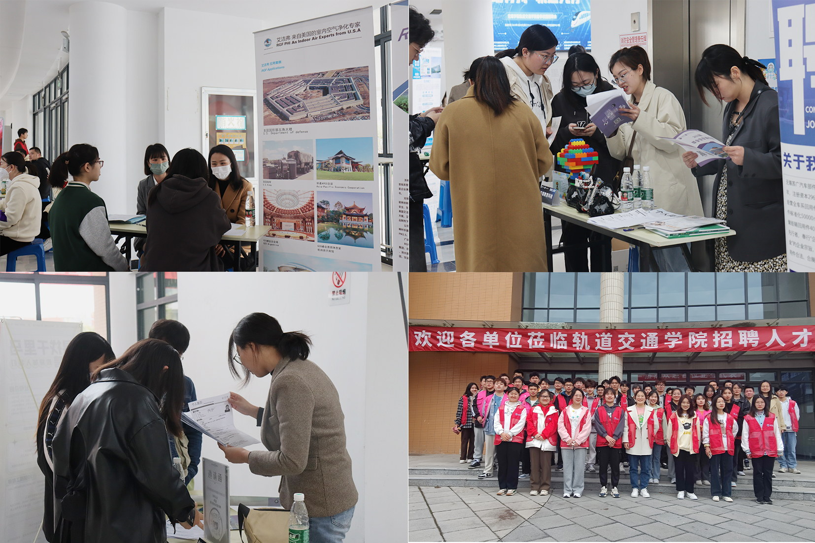 为确保招聘会的圆满举行,轨道交通学院学生会组织志愿者合理规划招聘场地,妥当安排企业展位,为企业提供了一对一引领等志愿服务,给予参会企业良好体验。