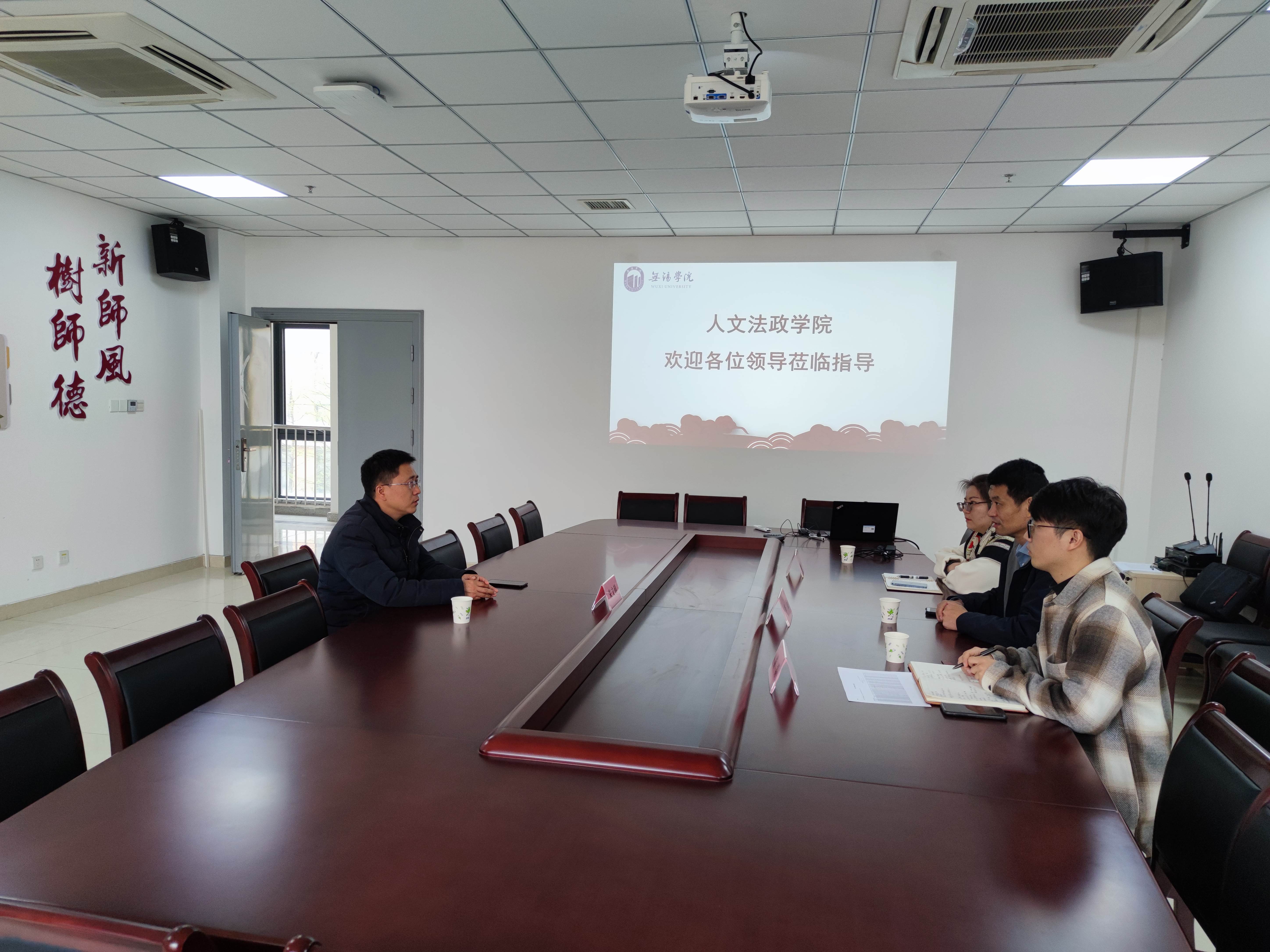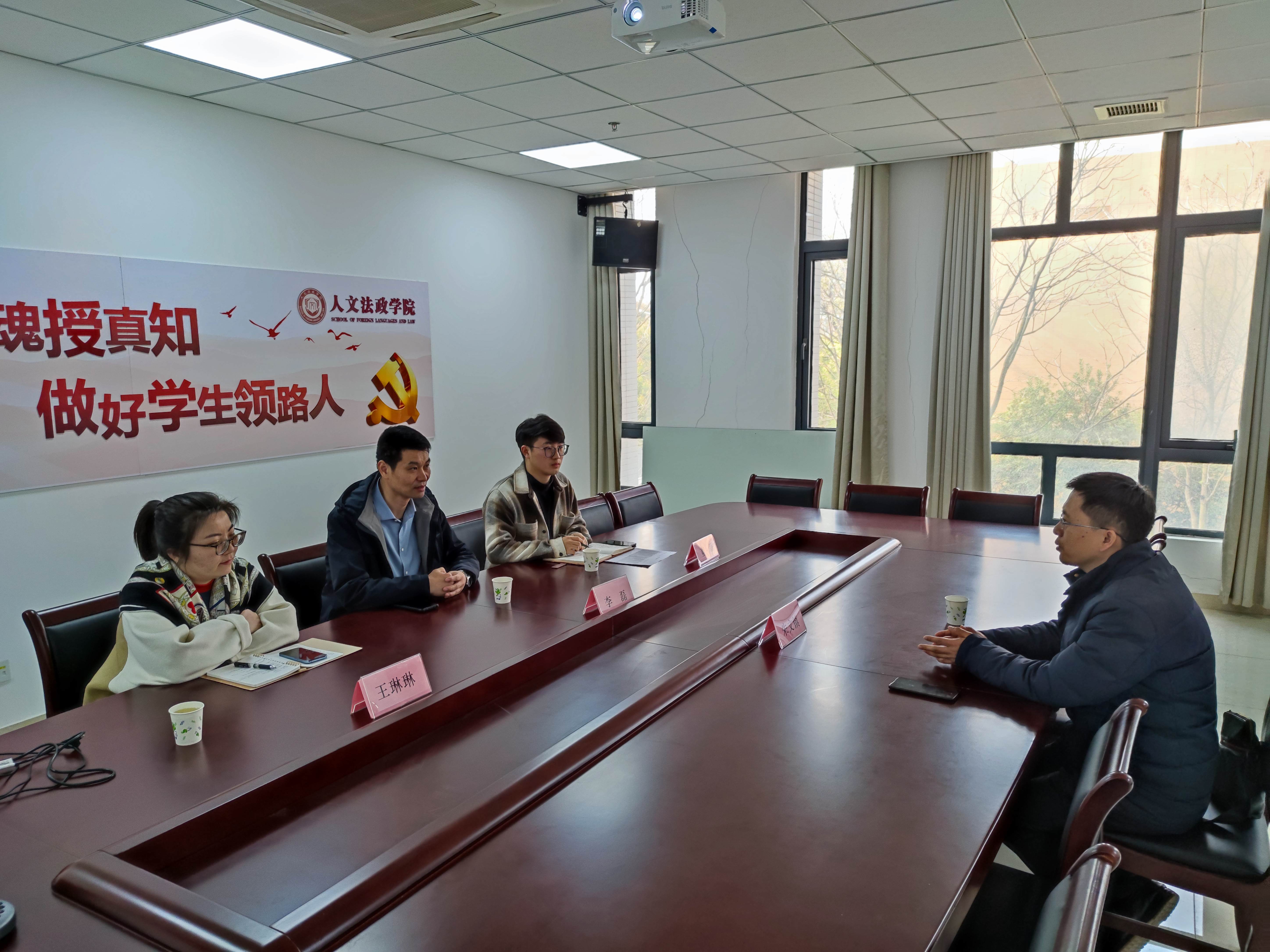 为加强人文法政学院辅导员队伍建设,充分发挥辅导员在学生教育管理工作中的重要作用,切实提升我院辅导员的专业素养和管理水平,3月27日下午,人文法政学院在尚真楼208会议室召开学生工作交流会。南京信息工程大学计算机学院、网络空间安全学院党委副书记、副院长朱文镇应邀出席,学院党总支负责人李磊、分团委书记王琳琳、辅导员董磊参加交流会。