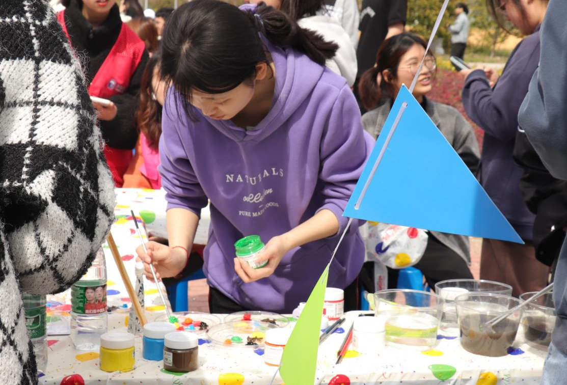 本次活动共开设15个摊位,提供了多样的游戏,吸引了大量的学生。手绳摊上一个个五颜六色的串珠被柔软的绳子串成一串,象征着五彩的校园生活;风车摊上,樱花树下,颜色各异的纸风车迎风转动;石膏球摊位边,同学们用巧手制作出一个个惟妙惟肖的石膏娃娃;书法展上,笔尖宛若行云流水,一张张字画笔精墨妙;乒乓台前、踢毽子挑战摊位上,挑战者络绎不绝、跃跃欲试……精彩的节目不断上演,动人的旋律,曼妙的舞姿,吸引了不少同学积极参与。