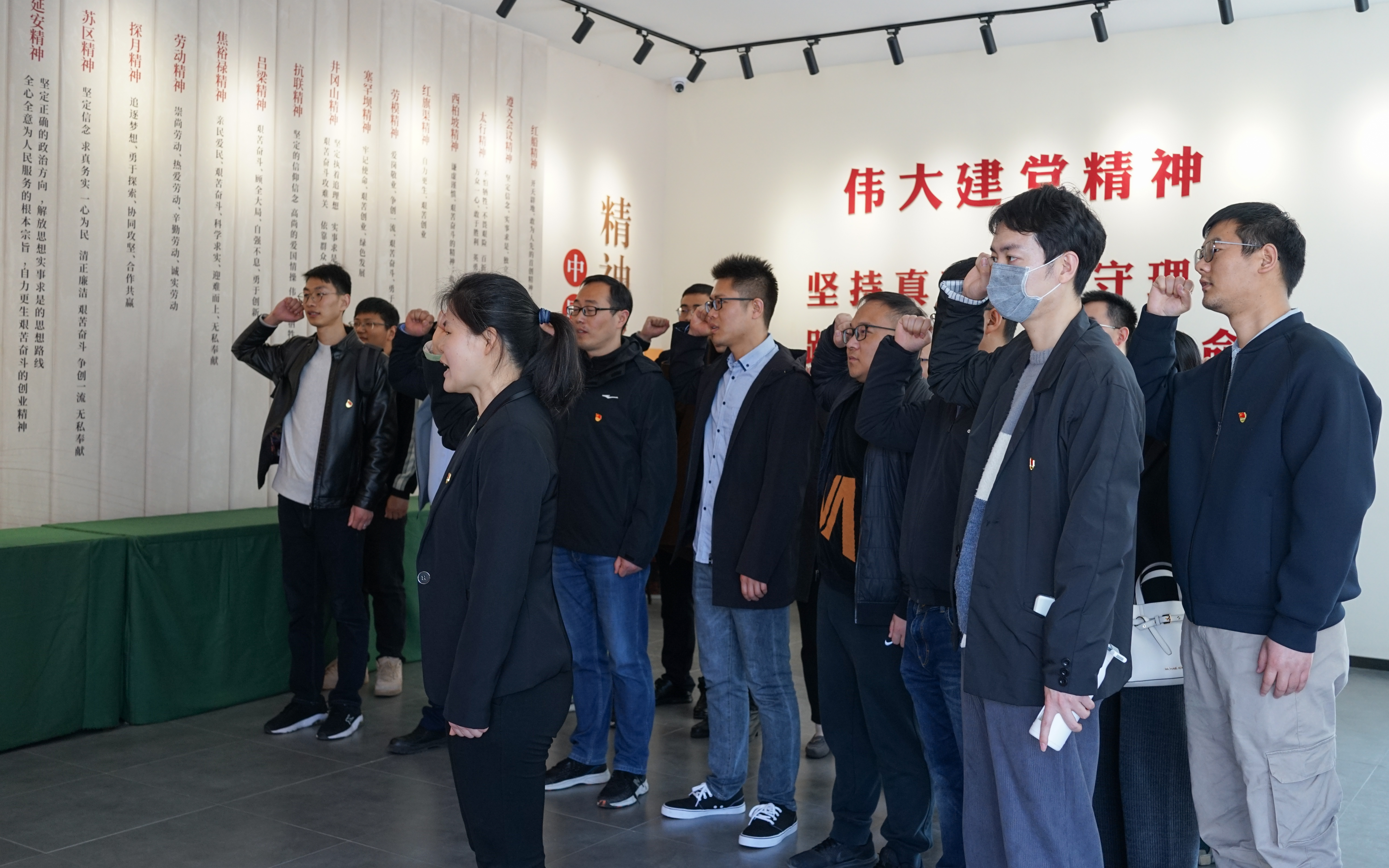 在新四军江抗东进纪念馆,通过仔细聆听、认真学习,大家通过大量文献资料、历史图片和珍贵实物了解到江南抗日义勇军为夺取抗战最终胜利作出的重大贡献,追思缅怀英烈的丰功伟绩,重温中华民族艰苦卓绝的奋斗历程。面对鲜红党旗,全体师生党员高举右拳,庄严重温入党誓词,回溯初心使命,坚定理想信念。