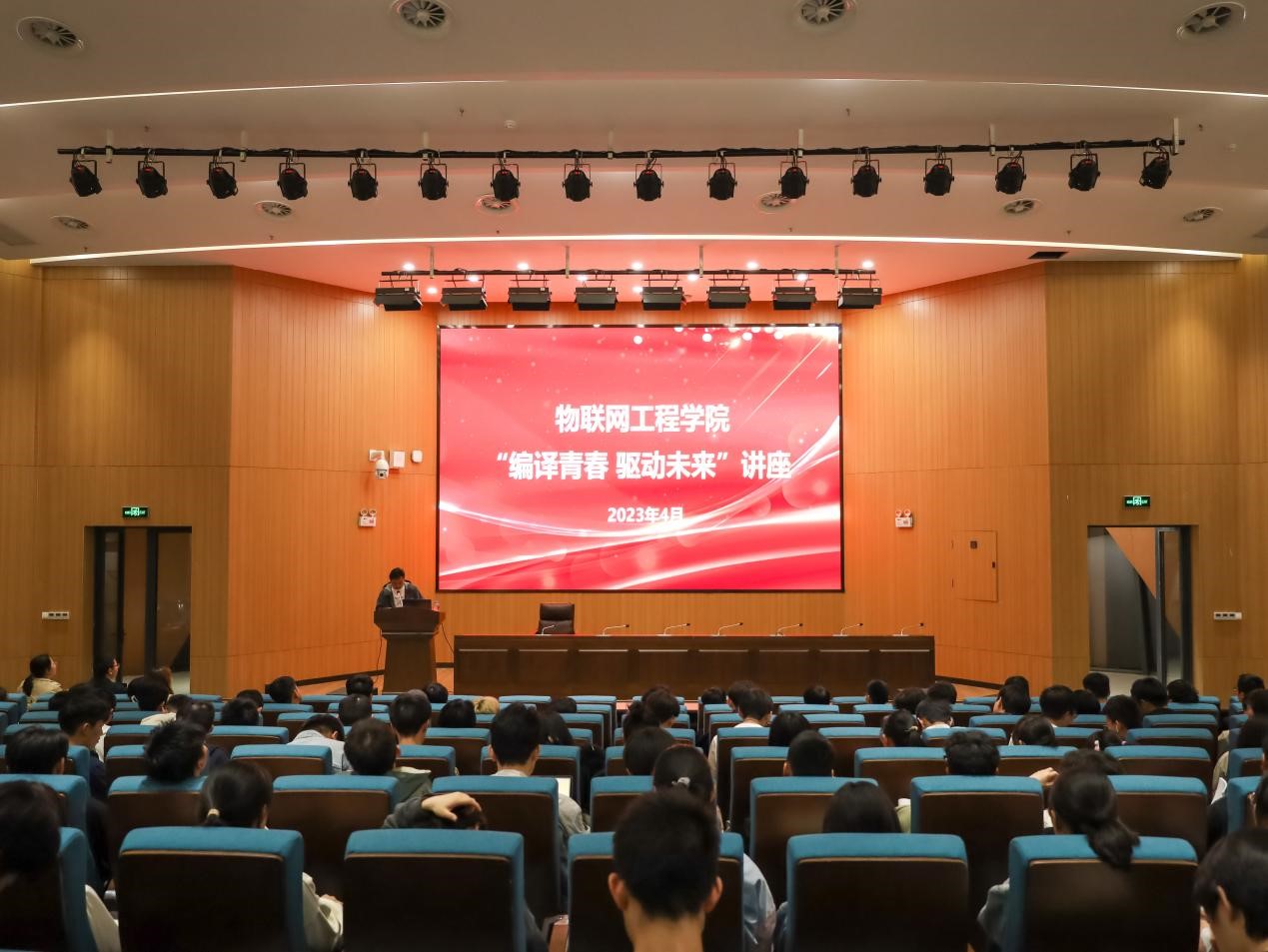 4月16日晚,物联网工程学院于图书馆报告厅召开“编译青春,驱动未来”系列主题讲座。党总支副书记臧文佳出席讲座,计算机系系主任刘伟受邀作主题报告,优秀学生代表吴磊、童天宇分享成长心得,22级计科专业、计嵌专业、大数据专业310余名学生参加,讲座由辅导员缪志刚、戚名扬主持。
