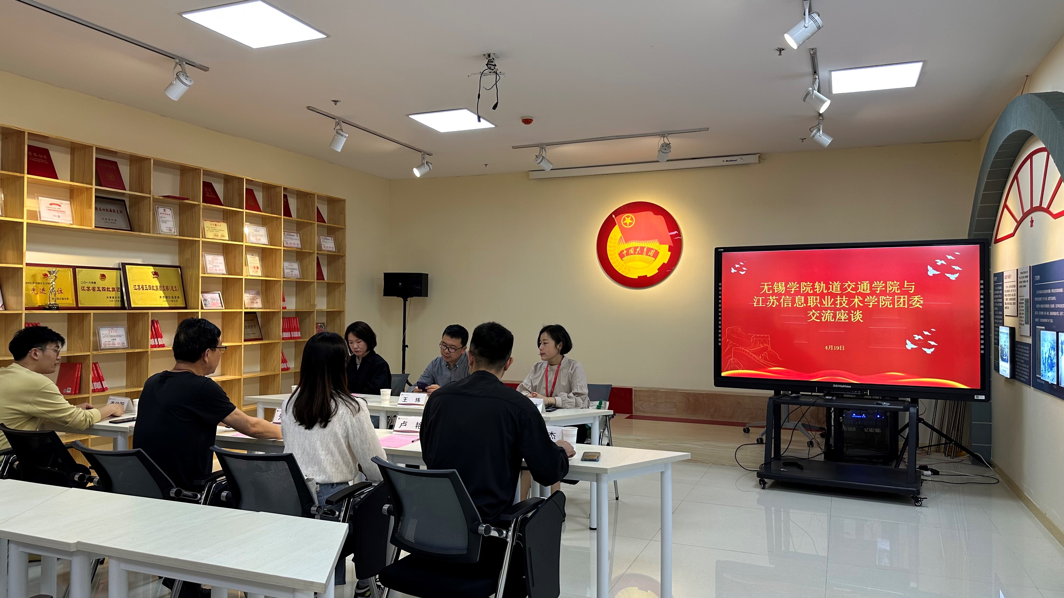 会前,吴杰带领学院一行参观了江苏信息职业技术学院团员意识主题教育馆,讲解员向师生们讲述了“中国精神”的深刻内涵,通过“实境课堂”,重温入团、入党誓词,追寻历史足迹。