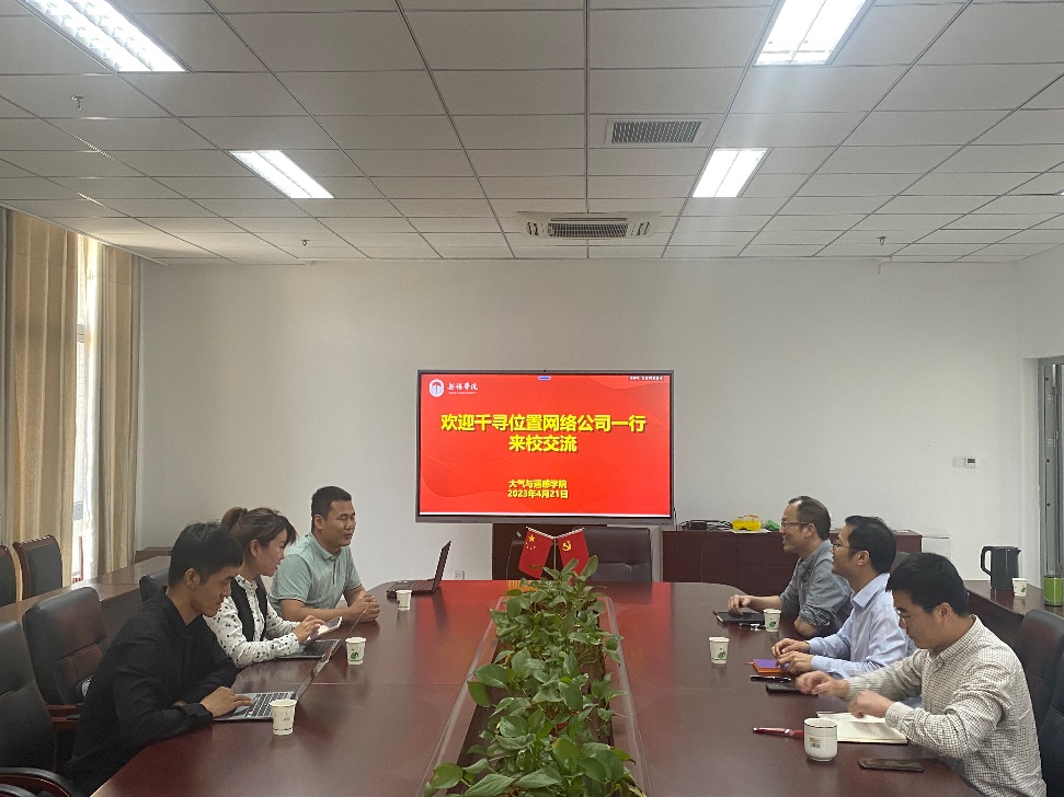 4月21日下午,千寻位置网络公司经理郭丽娟一行来校交流,大气与遥感学院院长卢楚翰,院长助理刁一伟,地理与遥感系专业负责人蔡鹏参加座谈交流。