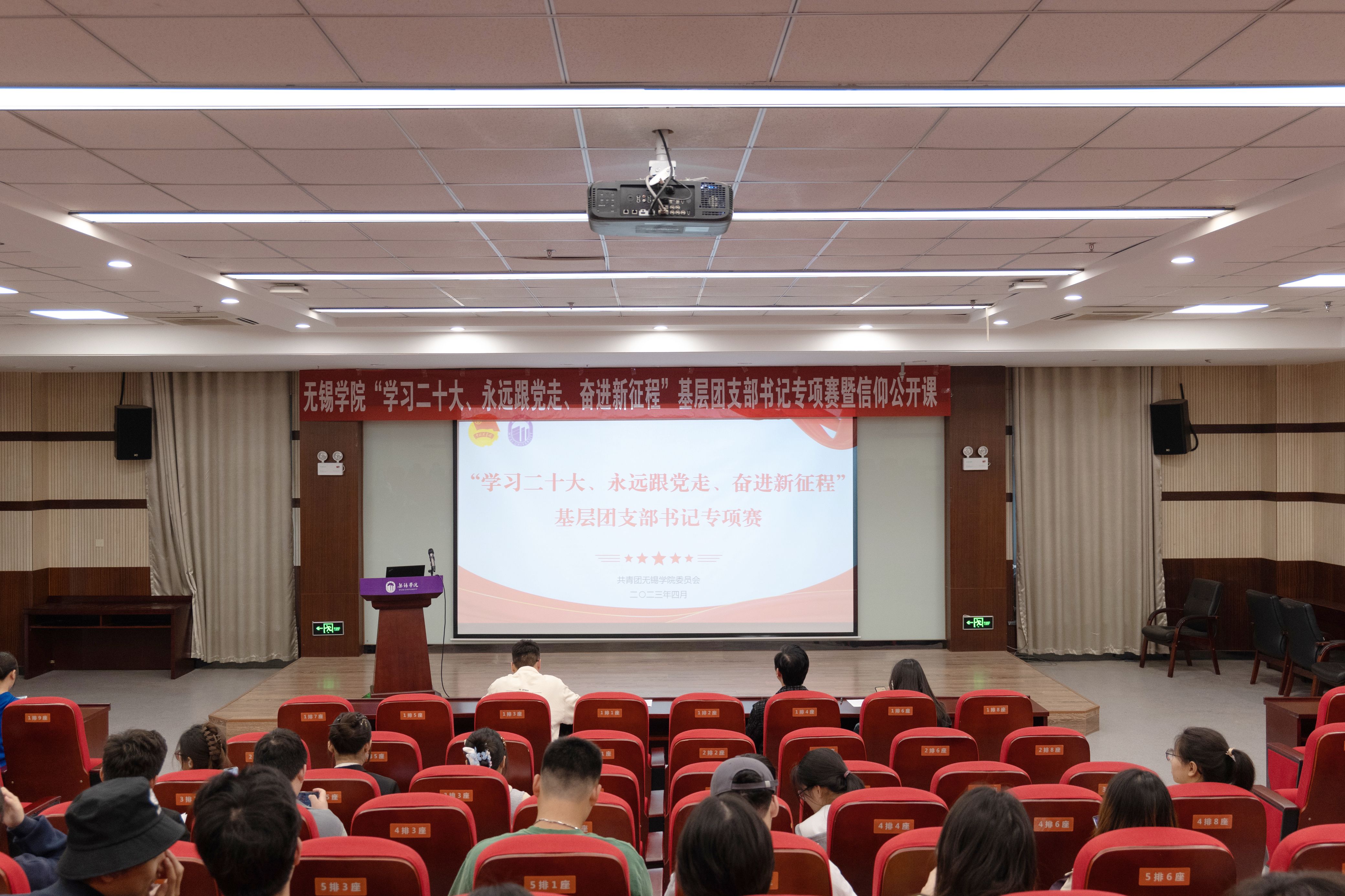 为深入学习宣传贯彻党的二十大精神,进一步聚焦思想,引领主责主业,团结带领我校团员青年坚定信念跟党走,勇做走在新时代新征程奋进者,4月26日下午,我校在行政楼227报告厅举办“学习二十大、永远跟党走、奋进新征程”基层团支部书记专项赛暨信仰公开课。校团委余润阳、钱静、张浩宇老师,学生工作处徐月欣老师担任比赛评委,青马工程培训班学员、青年学习社成员到场观摩学习。