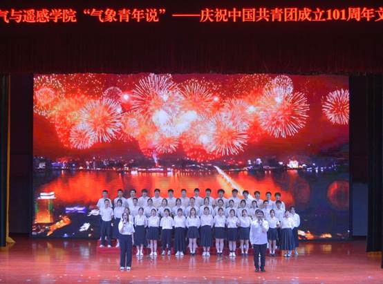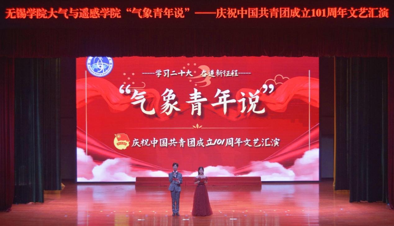 为庆祝中国共产主义青年团成立101周年,激励广大团员青年传承红色基因,大气与遥感学院于5月5日晚在滨江大礼堂举行“气象青年说”文艺汇演。此次汇演特邀无锡学院党委常委副校长左同宇教授、无锡学院学工处处长张灿龙老师、无锡学院校团委书记李沛武老师、大气与遥感学院院长卢楚翰教授、大气与遥感学院党总支副书记范雪老师、大气与遥感学院教工支部书记刁一伟老师及大遥院各系专任教师和各年级同学们观看,大气与遥感学院司芸浩与侯正姿同学主持。