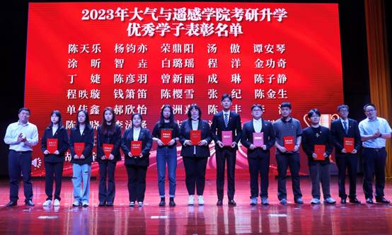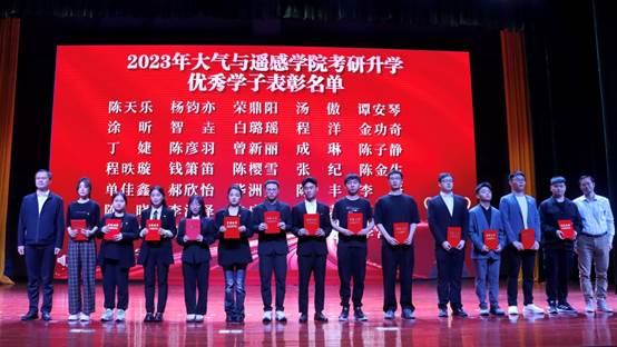 开场舞蹈《画卷》将中华传统元素与现代流行元素相融合,舞者以身体作画,身随韵动、物我相融,将全场气氛瞬间点燃;歌曲《人世间》歌词细腻温馨,曲风婉转动人;特邀请左同宇副校长、张灿龙处长、李沛武书记、卢楚翰院长为考研升学拟录取的36位优秀的学长学姐们颁奖,被华东师范大学物理海洋学专业拟录取的杨钧亦同学发表了受表彰感言;一场激情澎湃的朗诵《追梦新时代 迈向新征程》,斗志昂扬,充满力量;情景剧《代代气象人的守望》用形象生动的表演将一代代气象人的艰苦奋斗与信念表现得淋漓尽致;演讲《追风》向大家呈现了竺可桢先生自强不息、永不气馁的奋斗精神。中场互动环节中,主持人带着大家进行了轻松愉快的小游戏—气象争霸赛,现场气氛活跃欢乐。