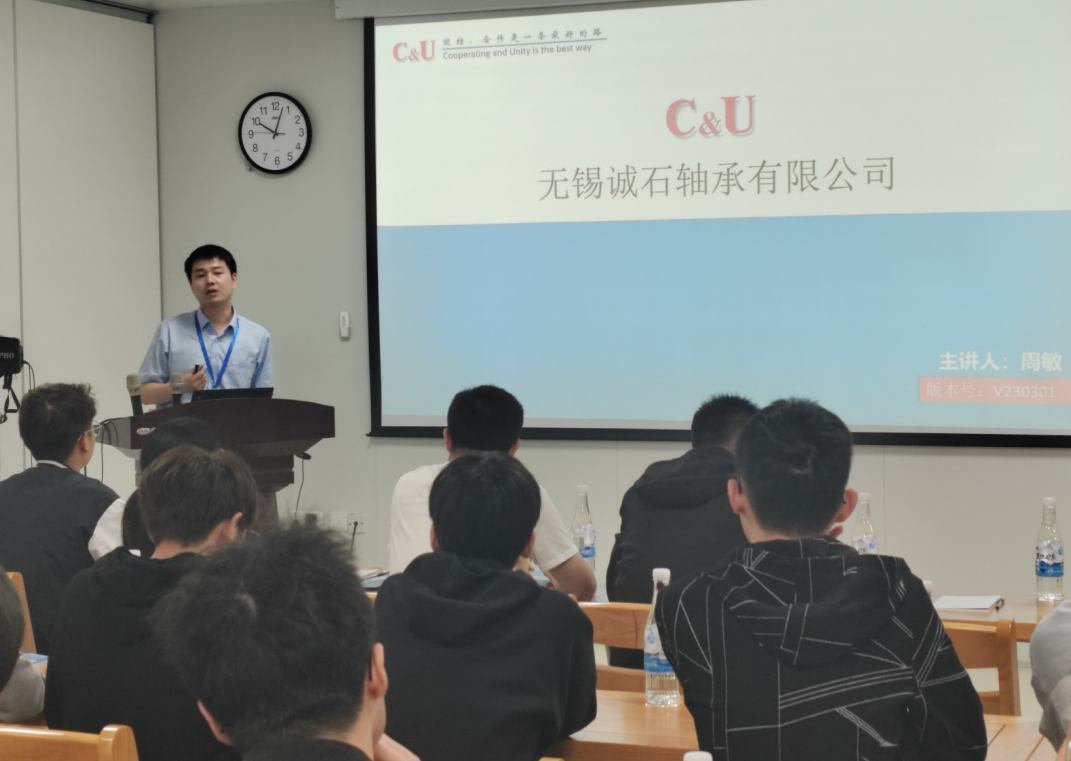 赵成金对王明杰一行的到来表示热烈欢迎,并从企业概况、产品介绍、职业发展、企业文化等方面对人本无锡诚石轴承有限公司展开详细介绍。周敏从园区概况、发展历程、组织架构、园区各单位介绍、后勤保障等方面对人本无锡园区风采进行展示。其中,赵成金、周敏重点介绍来锡毕业生就业政策,并对学生所提实习就业问题进行一一解答。