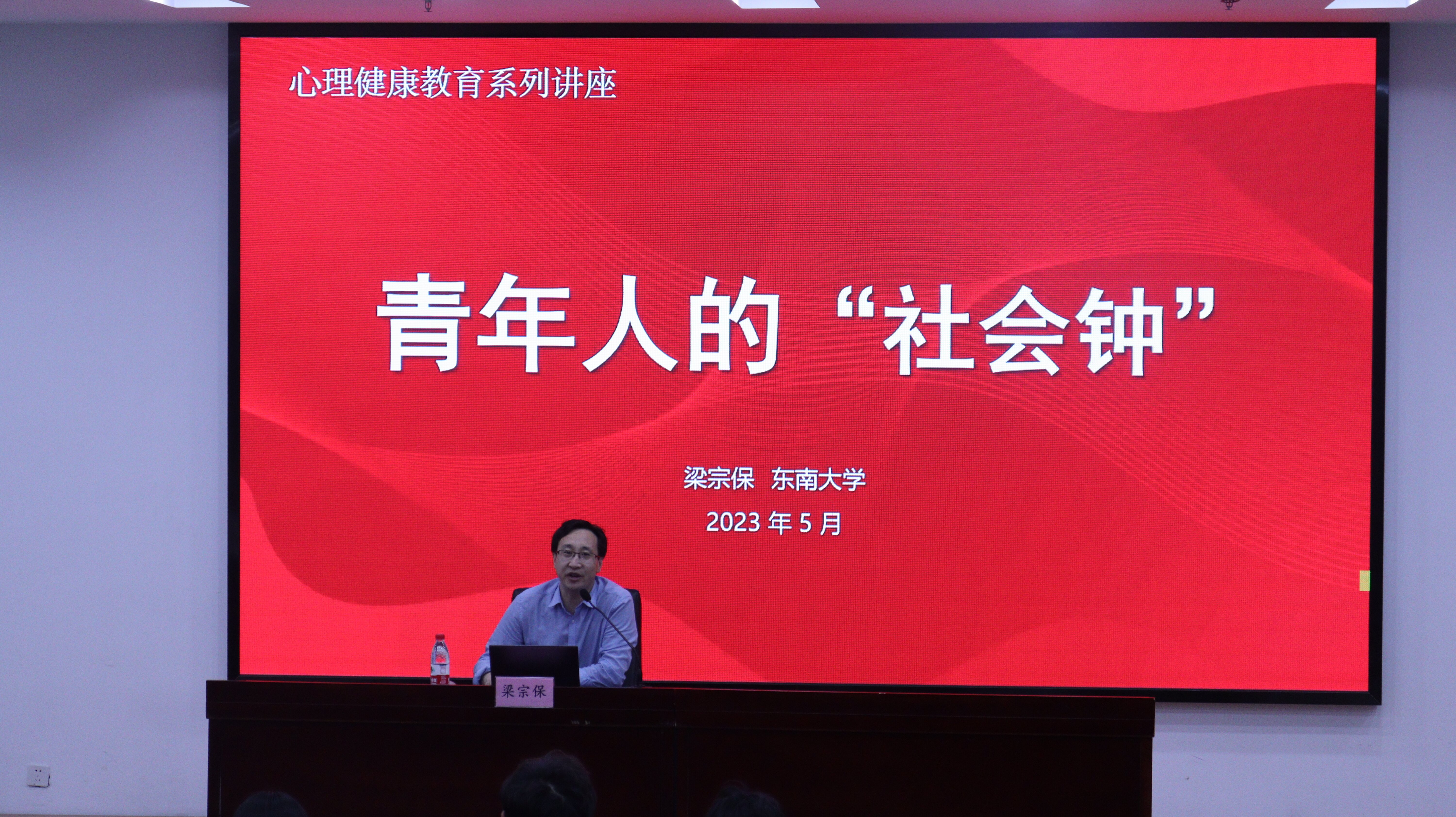 5月24日下午,东南大学梁宗保副教授应邀在我校科创楼报告厅作《青年人的“社会钟”》心理健康专题讲座,200余名在校生聆听了本次讲座。