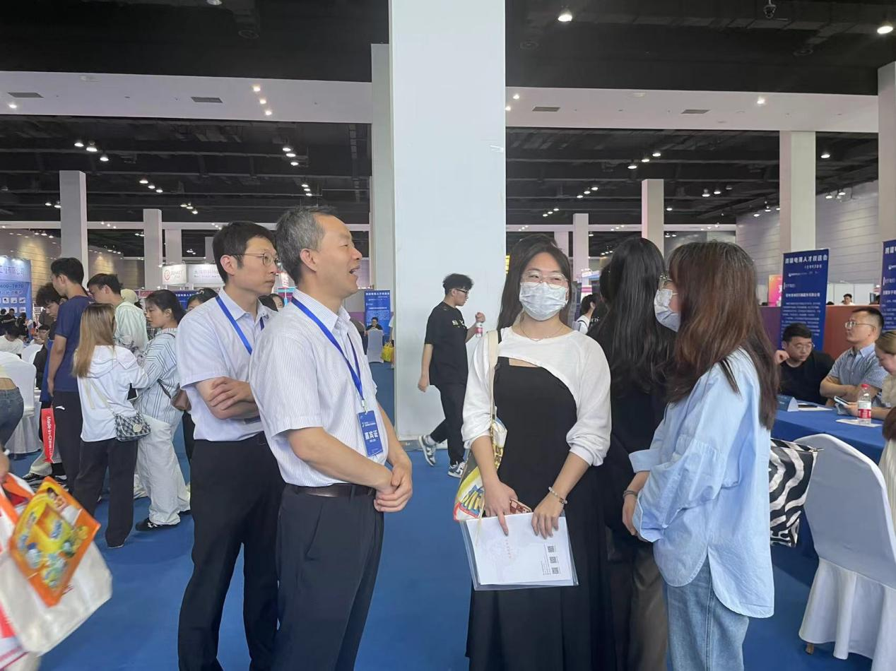 本次人才双选会由无锡市商务局、无锡市教育局与无锡市人力资源和社会保障局共同主办,参会企业近40家,提供岗位350余个,均为跨境电商相关企业。数字经济与管理学院积极与参会企业洽谈交流,目前已与多家企业初步达成校企合作意向。针对求职学生,刘军悉心指导,了解他们的求职意向,鼓励他们早日找到自己心仪的工作。