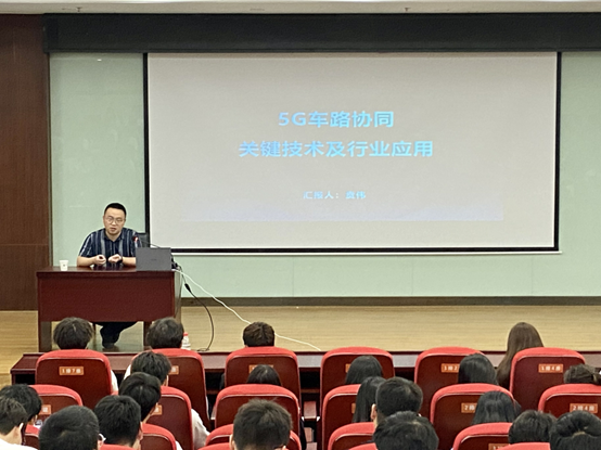为营造良好的学术氛围,深入了解车联网技术及发展,有效推动车联网产业学院建设,6月7日,车联网产业学院于行政楼121报告厅举办《5G车路协同关键技术及行业应用》主题讲座,特别邀请了南京莱斯网信技术研究院公司副总经理贲伟作为本次讲座的主讲人。讲座由物联网工程学院院长助理李富主持。