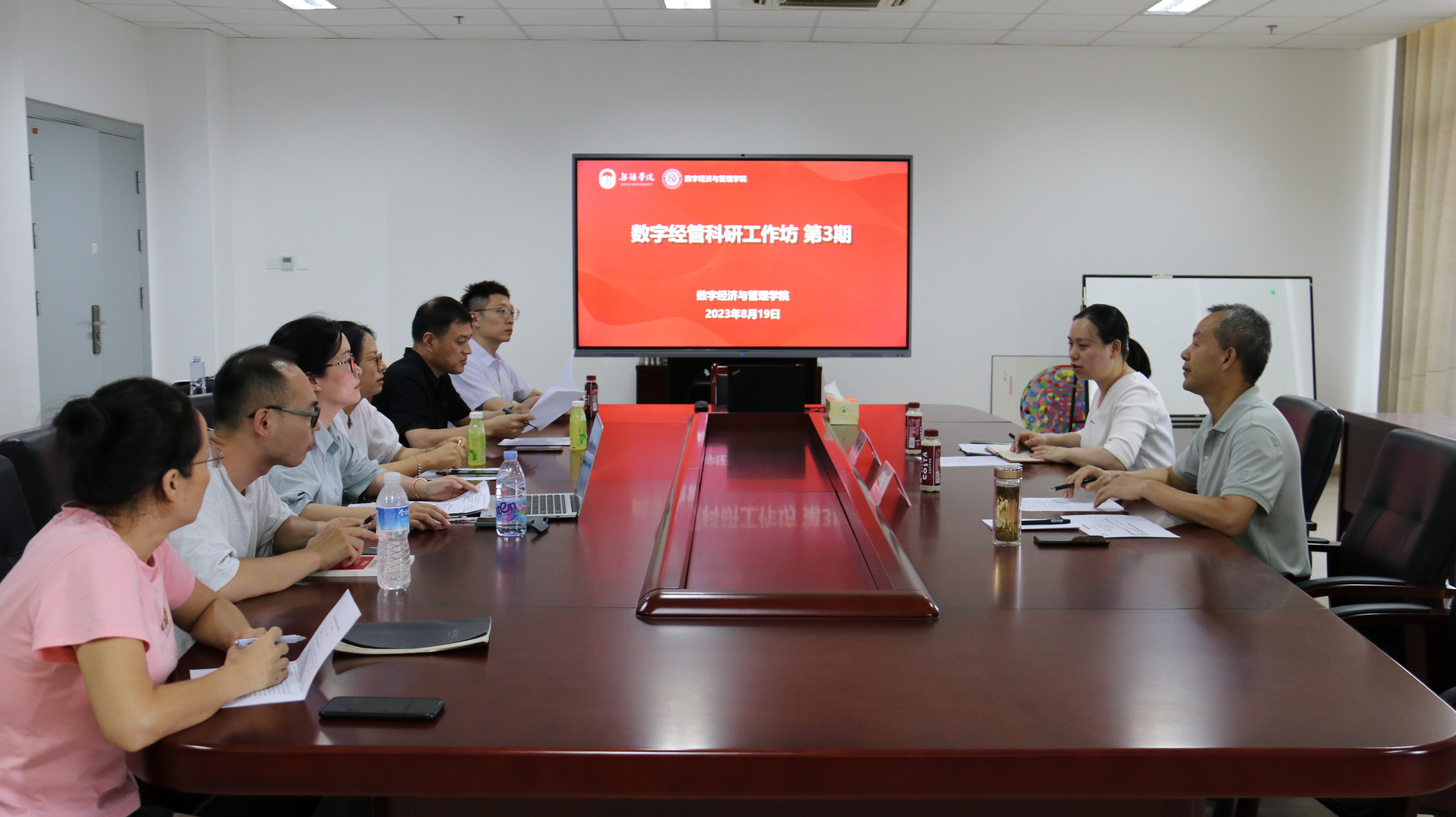 8月19日下午,“数字经管科研工作坊”第3期(干部考核评价研究专题)顺利召开。会议特邀校外专家指导点评,数字经济与管理学院院长刘军,院长助理刘震及无锡干部考核评价研究中心(高质量发展评价研究院无锡分院)全体研究人员参加会议。会议由刘军主持。
