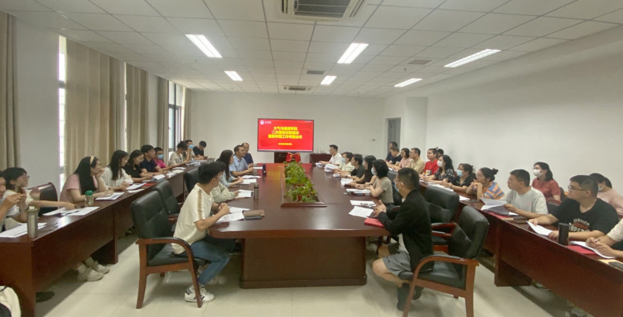 8月29日下午,大气与遥感学院在尚善楼507会议室召开了新学期工作部署会议。院长卢楚翰、党总支副书记范雪、院长助理刁一伟及全体教职工参加会议。会议由卢楚翰主持。