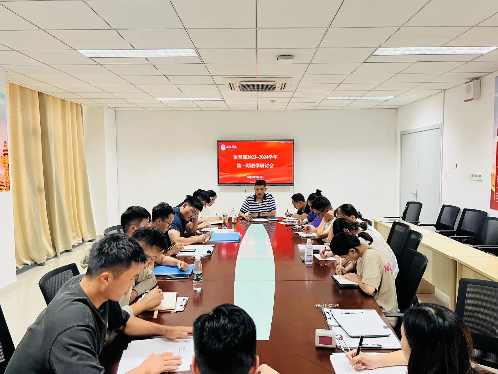为进一步提升体育部教师道德修养、教学技能、学科素养,9月6日,体育部于会议室204召开2023-2024学年第一期教学研讨会。体育部副主任宋巨华主持会议,全体教师参加会议。