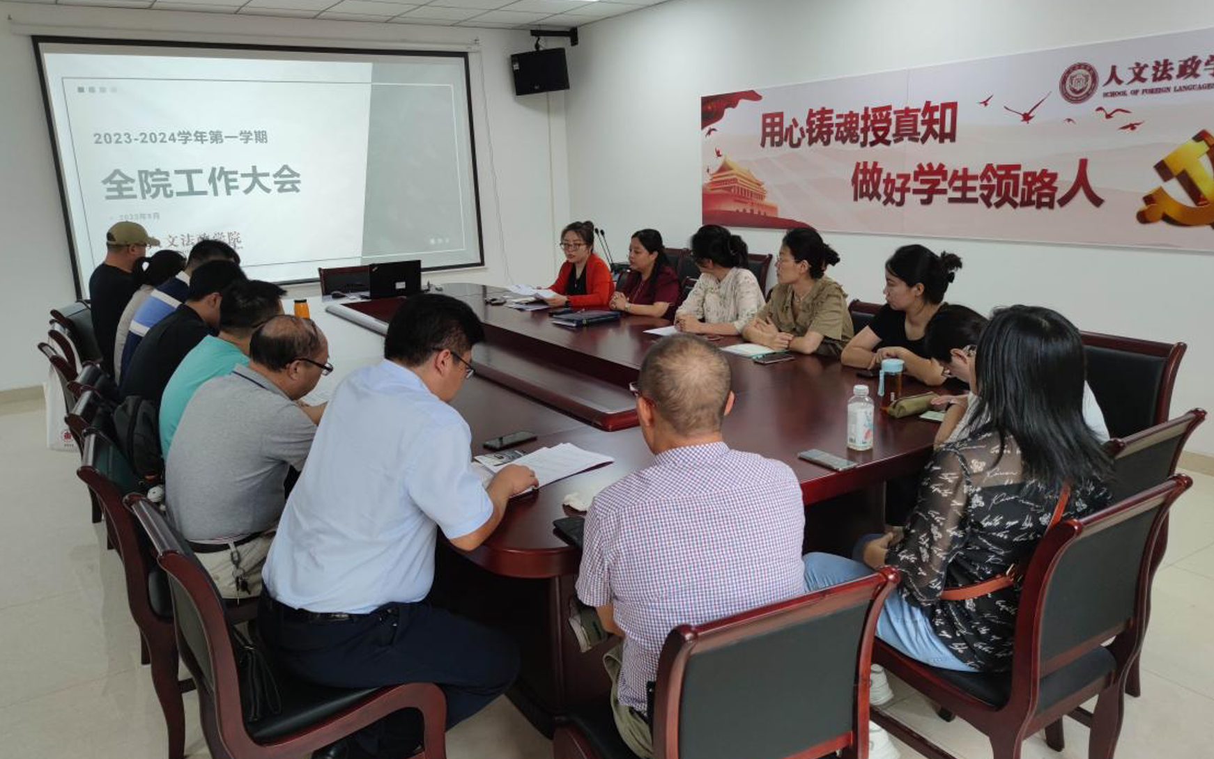 9月6日下午,人文法政学院在尚真楼208会议室召开新学期全院工作大会,回顾上学期工作,总结经验,部署新学期任务,确保本学期工作的顺利开展。副院长赵岚、党总支副书记王琳琳、院长助理俞星月及全体教职工参加会议。会议由赵岚主持。
