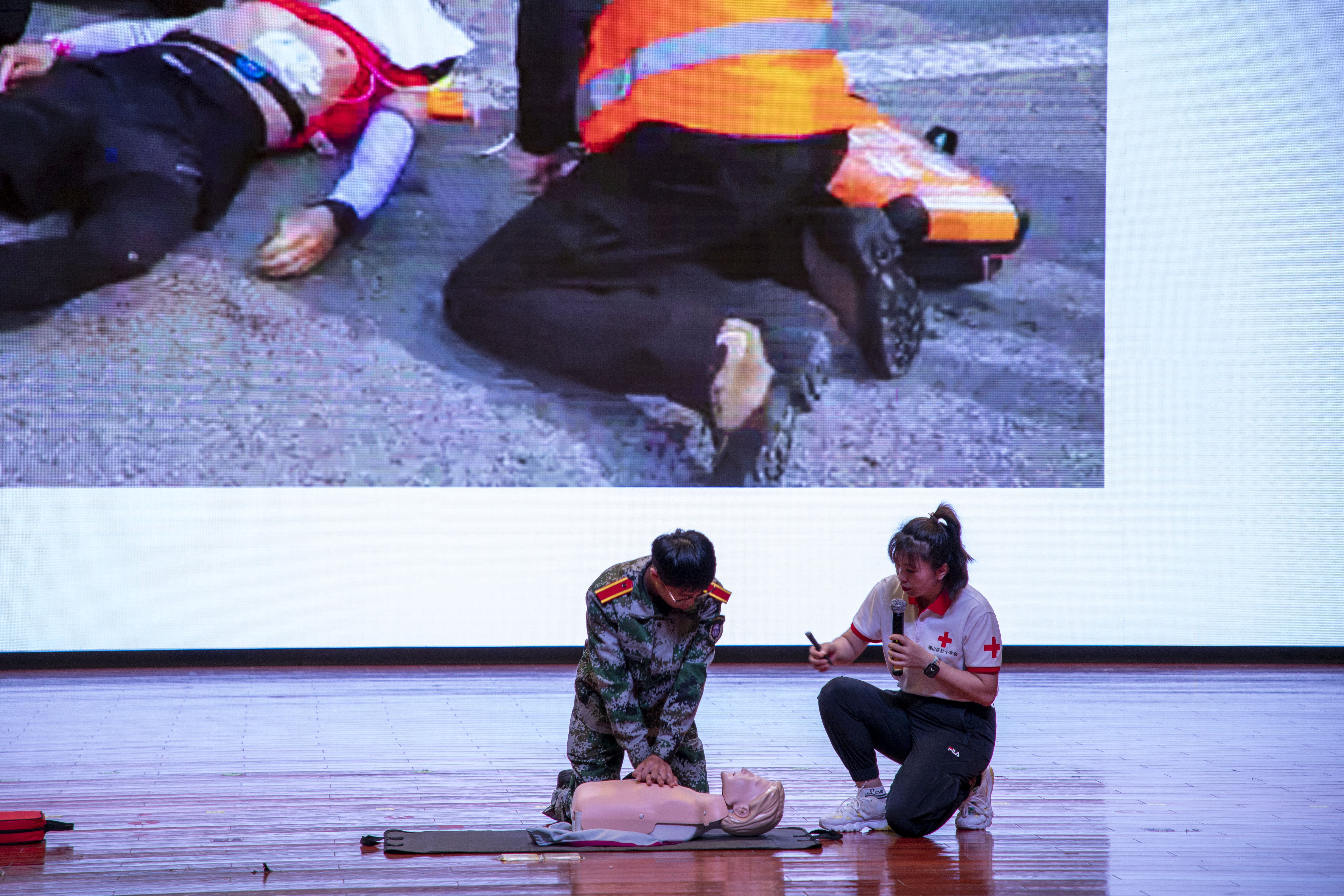 为进一步普及急救知识,提高学生的安全意识和救助能力,9月16日晚,锡山区红十字会后丽娟老师、江苏华腾消防安全科技服务有限公司高级工程师花平应邀在我校滨江大礼堂为2023级新生作急救知识和消防知识讲座,各学院师生代表共近600人到场聆听。讲座由校人武部副部长陈凯峰主持。