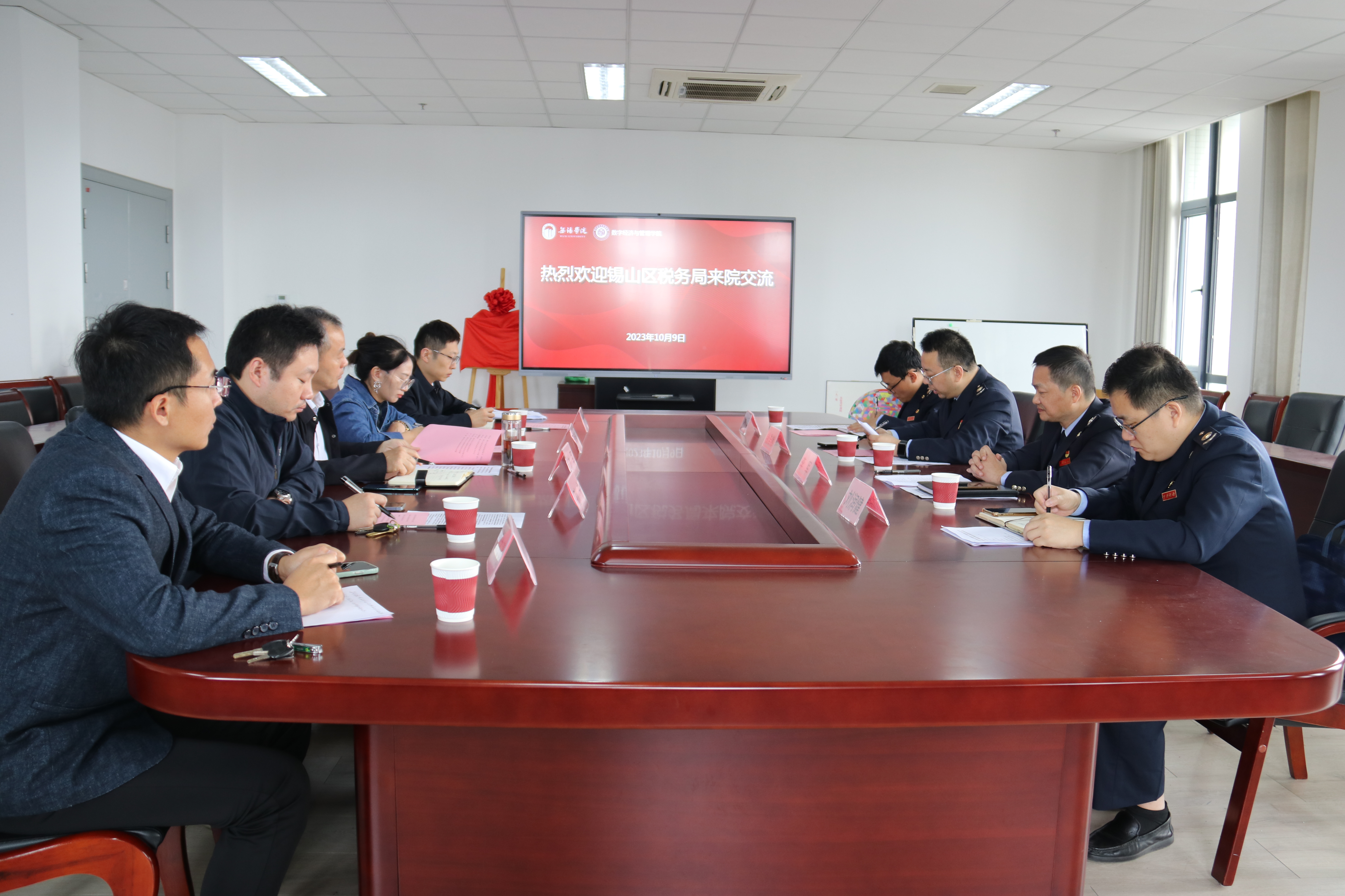 10月9日上午,数字经济与管理学院与锡山区税务局在尚美楼504举行党建结对共建合作协议签约仪式。锡山区税务局党委书记、局长李军,党委委员、副局长钱浩然,党建工作股股长刘润健,团总支书记潘亚磊,我校数字经济与管理学院院长刘军、党总支副书记李诗雅等相关工作人员参加会议。