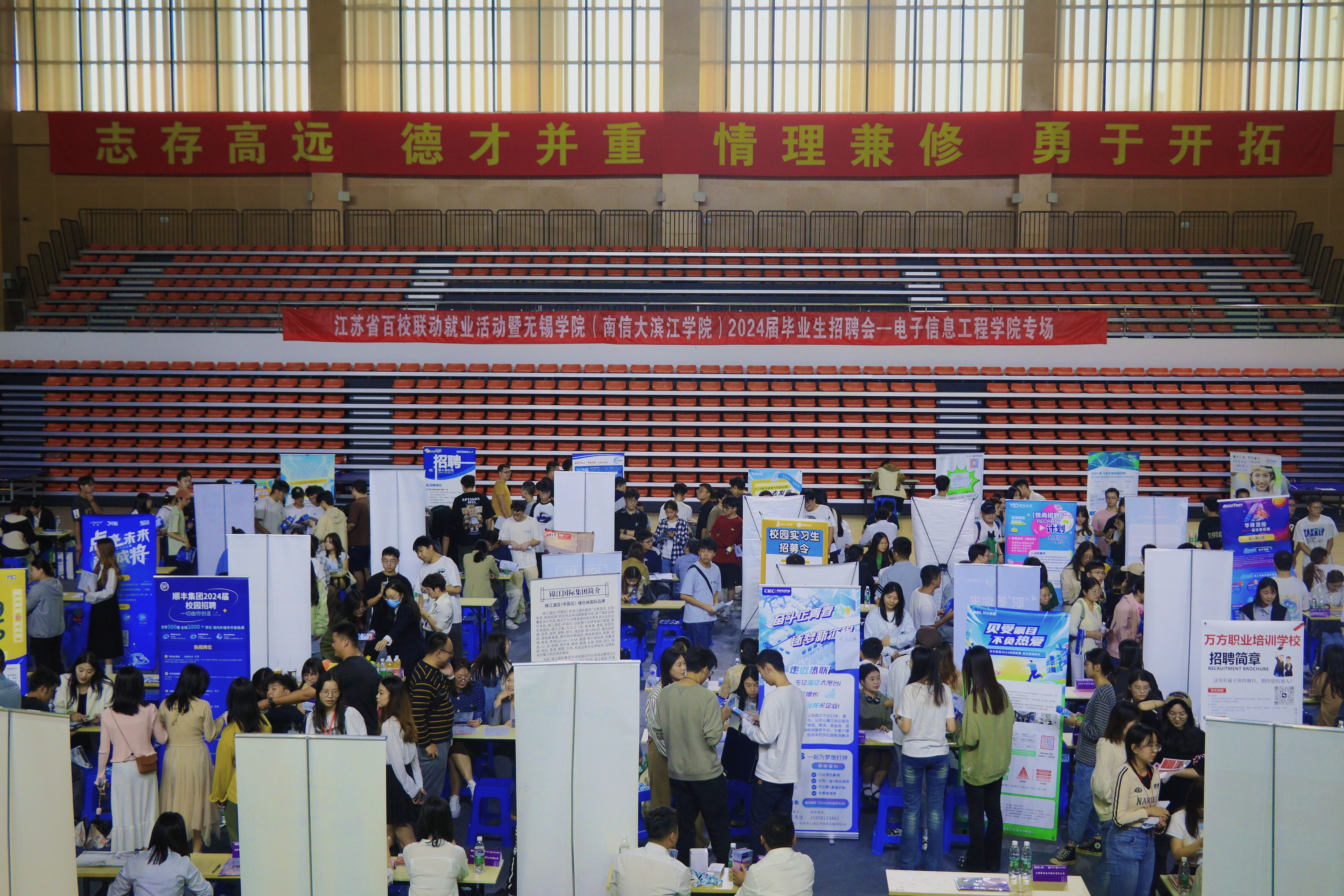 为深入学习贯彻党的二十大精神,落实党中央、国务院“稳就业”“保就业”决策部署,积极响应省高校招生就业指导服务中心“江苏省2024届高校毕业生百校联动就业活动”,拓宽学生就业渠道,助力毕业生顺利就业,10月18日,电子信息工程学院在主体育馆二楼举办“就在金秋,筑梦未来”电子信息工程学院专场招聘会。副校长左同宇,学生工作处、电子信息工程学院等相关负责人亲临招聘会现场指导,电子信息工程学院2024届全体毕业生参加本次招聘会。