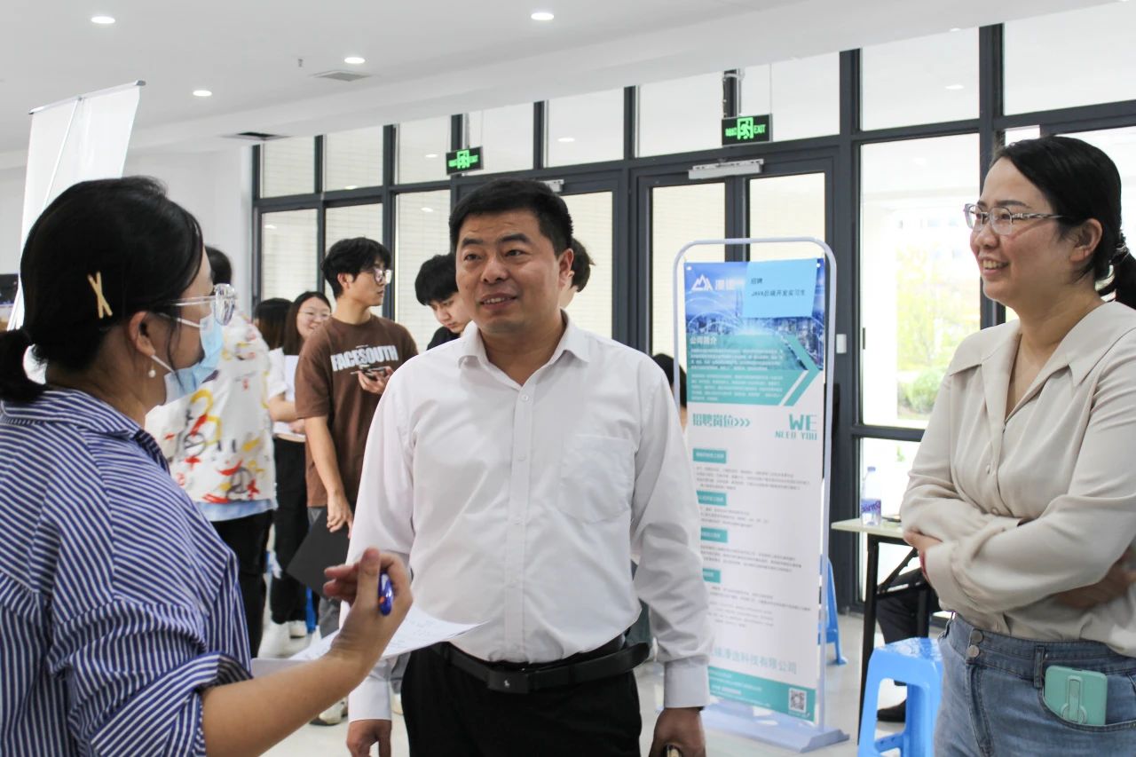 学生工作处处长张灿龙,物联网工程学院党总支副书记臧文佳,分团委书记周海华深入招聘会现场与用人单位交流,了解用工需求、岗位设置、薪资待遇等情况。在与现场求职毕业生交流时,臧文佳建议广大毕业生珍惜这次有针对性的专场招聘,找准定位、主动出击,尽早与心仪单位顺利签约。