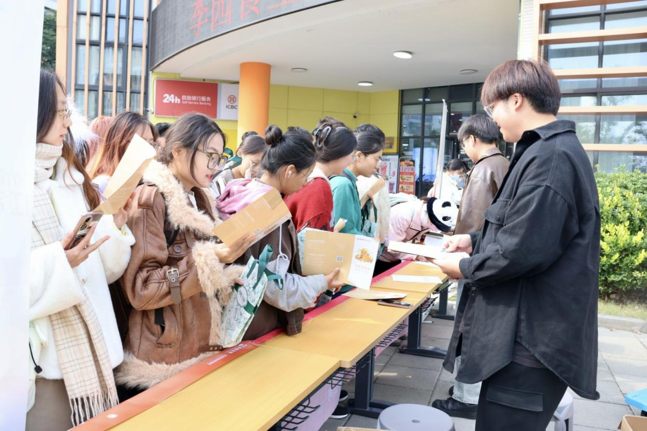 11月15日,第六届江苏省大学生金融节进校园活动在我校李园食堂门口和尚美楼205教室同步开展。本届活动由江苏省教育厅、共青团江苏省委、国家金融监督管理总局江苏监管局与新华日报社等单位联合主办,校团委和数字经济与管理学院联合承办。