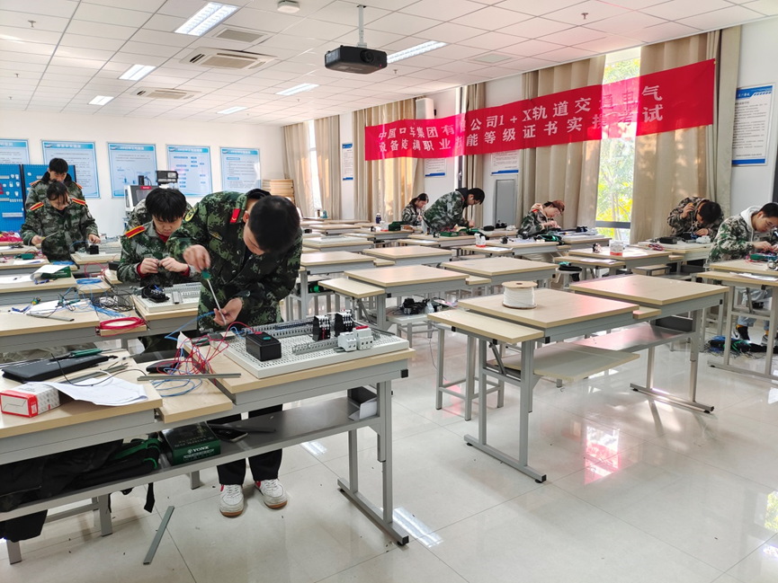 11月25-26日,中国中车集团有限公司“1+X”轨道交通电气设备装调职业技能等级证书秋季考试在无锡学院轨道交通学院顺利开展。考试包括理论和实操两部分,涵盖通用基础职业素养、专业知识和专业技能考核三部分,其中理论考试模块包括核心价值观和职业安全、健康、环保、节能、电工基础、电子技术、电机与电气控制技术、电力电子技术基础知识等;实操考试模块则包括常用高低压电器器件的检查与调试、常用电气控制电路的设计安装与调试、常用电子电路的安装与调试、常用电气设备的检查与调试四大模块。