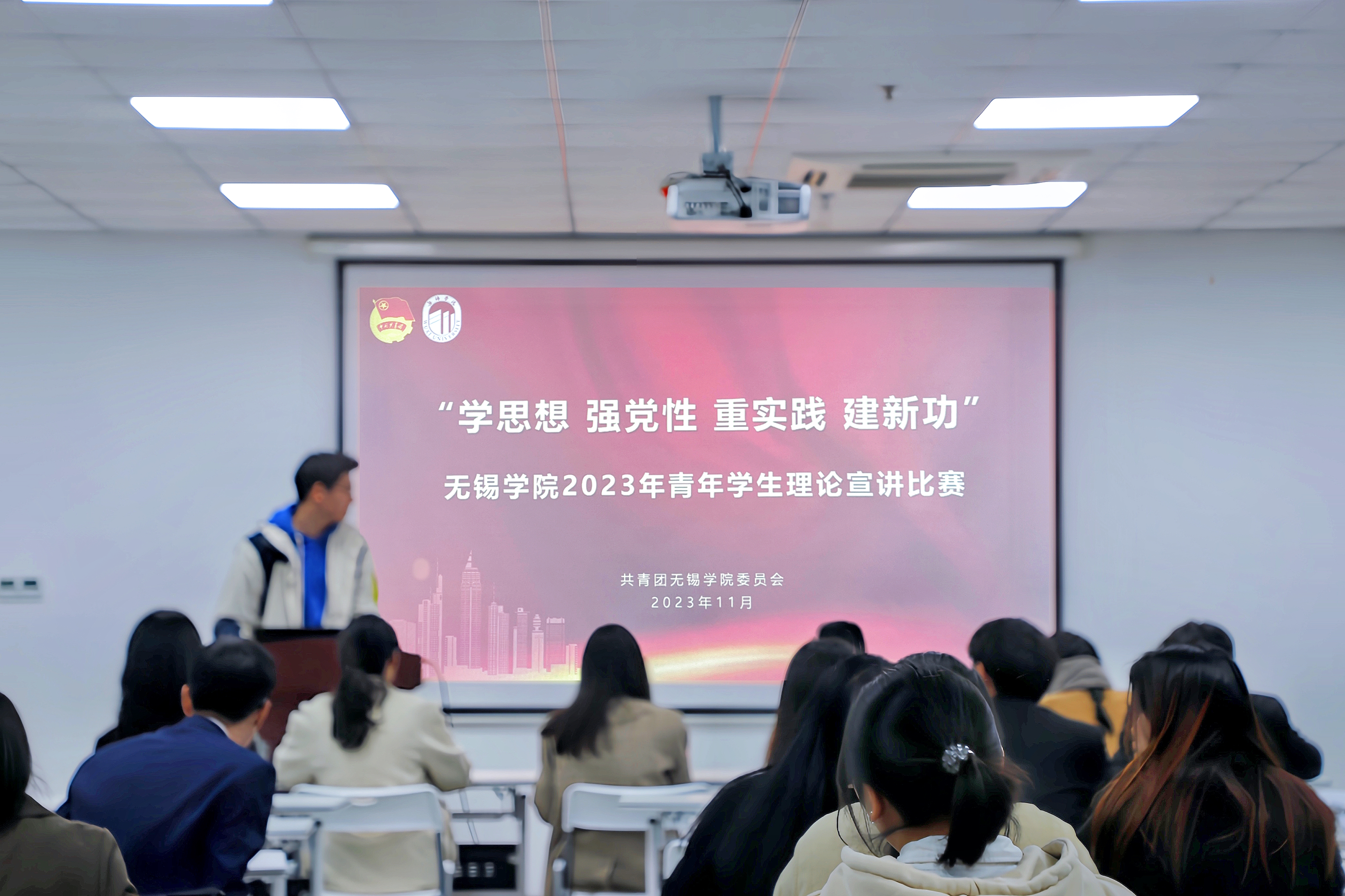 为深入学习贯彻习近平新时代中国特色社会主义思想,推动党的创新理论学习常态化,11月29日下午,校团委在大学生活动中心403会议室举行“学思想 强党性 重实践 建新功”青年学生理论宣讲比赛决赛。党委宣传部魏雯萍老师,党委学生工作部邹爱琪老师,校团委吴征开老师、钱静老师出席活动并担任评委,校青马工程学员到场观摩学习。