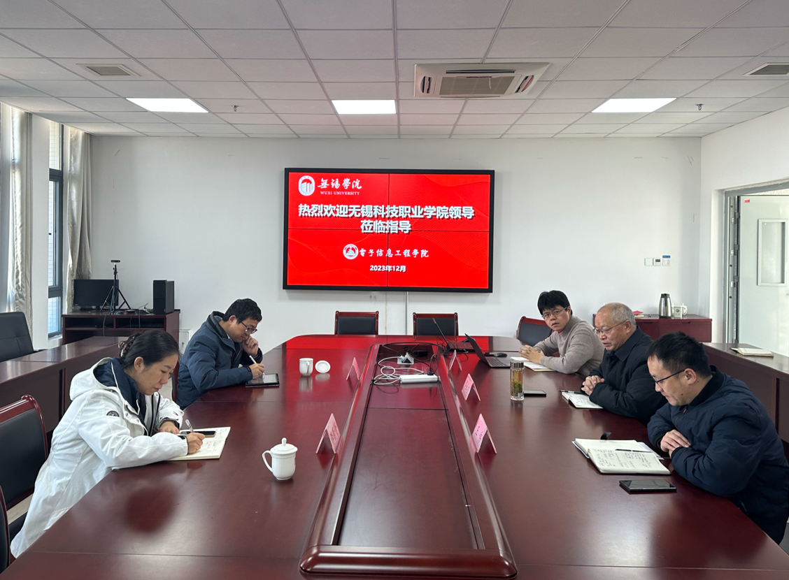 12月1日上午,无锡科技职业学院教务处处长赵航涛、集成电路学院院长李蕾蕾来电子信息工程学院交流座谈。电子信息工程学院(集成电路科学与工程学院)院长郭业才、副院长王伟等参加会议。