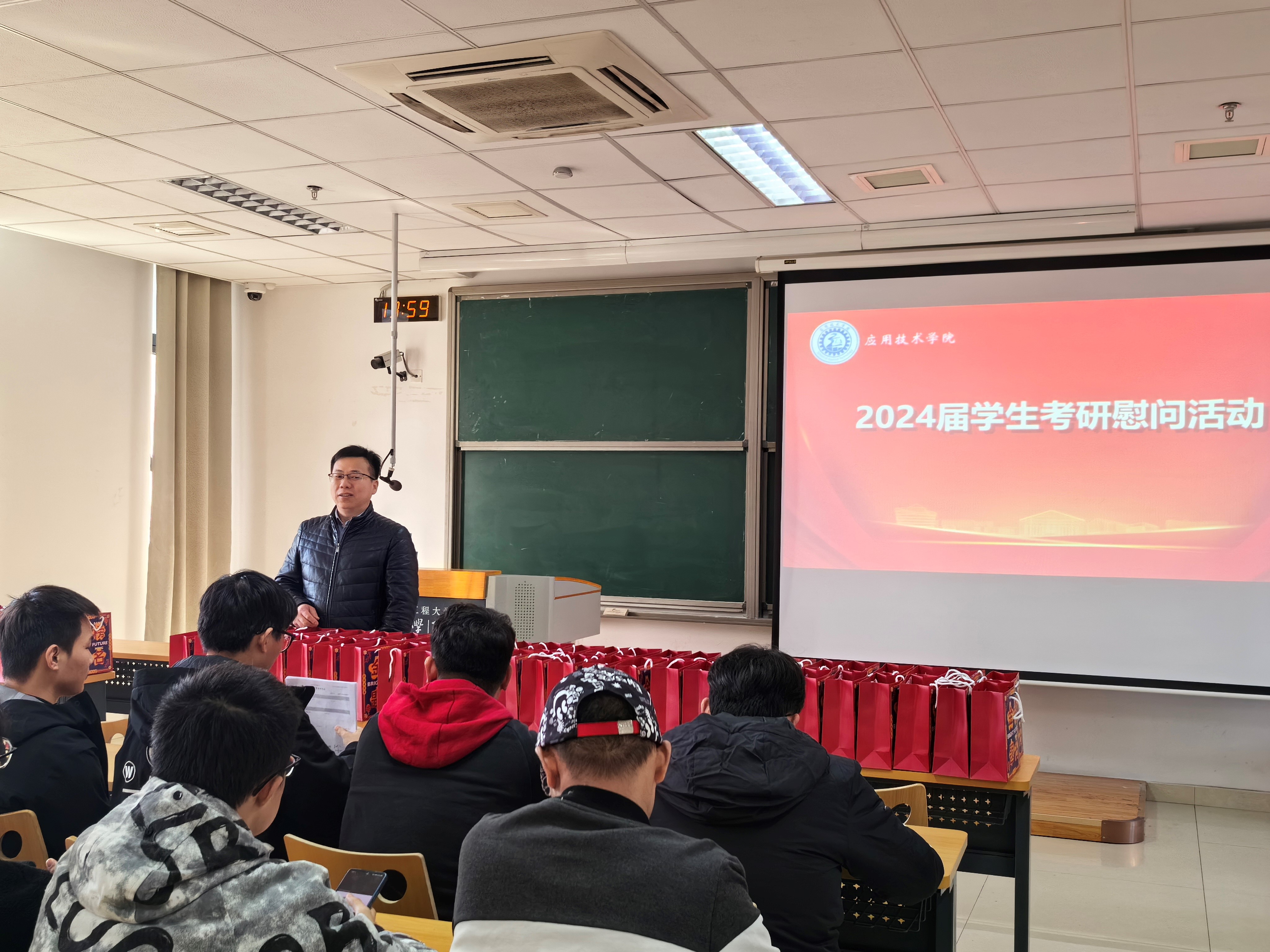 为缓解学生考研压力,坚定学生考研信心,12月7日下午,应用技术学院开展了2024届学生考研慰问活动。应用技术学院院长齐运锋、副院长武丽及相关老师出席活动。