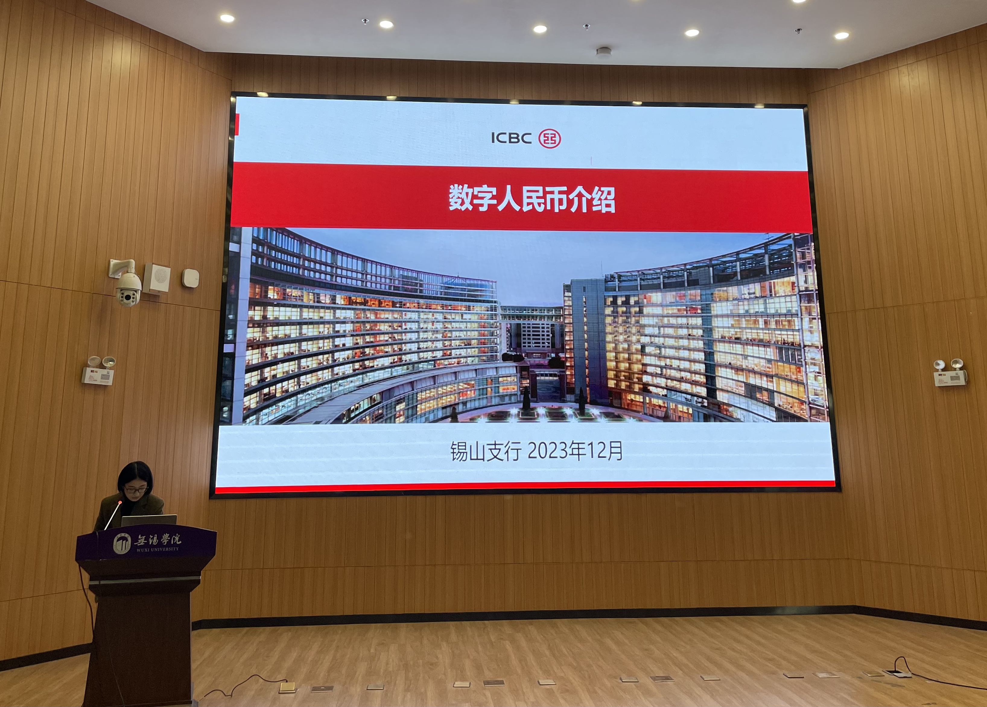 中国工商银行无锡锡山支行客户经理徐明媚分别从数币提出背景、基础理论、应用场景、具体使用四个维度,向师生们详细介绍了数字人民币的相关知识。讲座不仅有详实的理论知识,也有契合实际操作的指导建议。通过详细介绍校内数币应用体验等活动,推动数币在校园的推广应用。