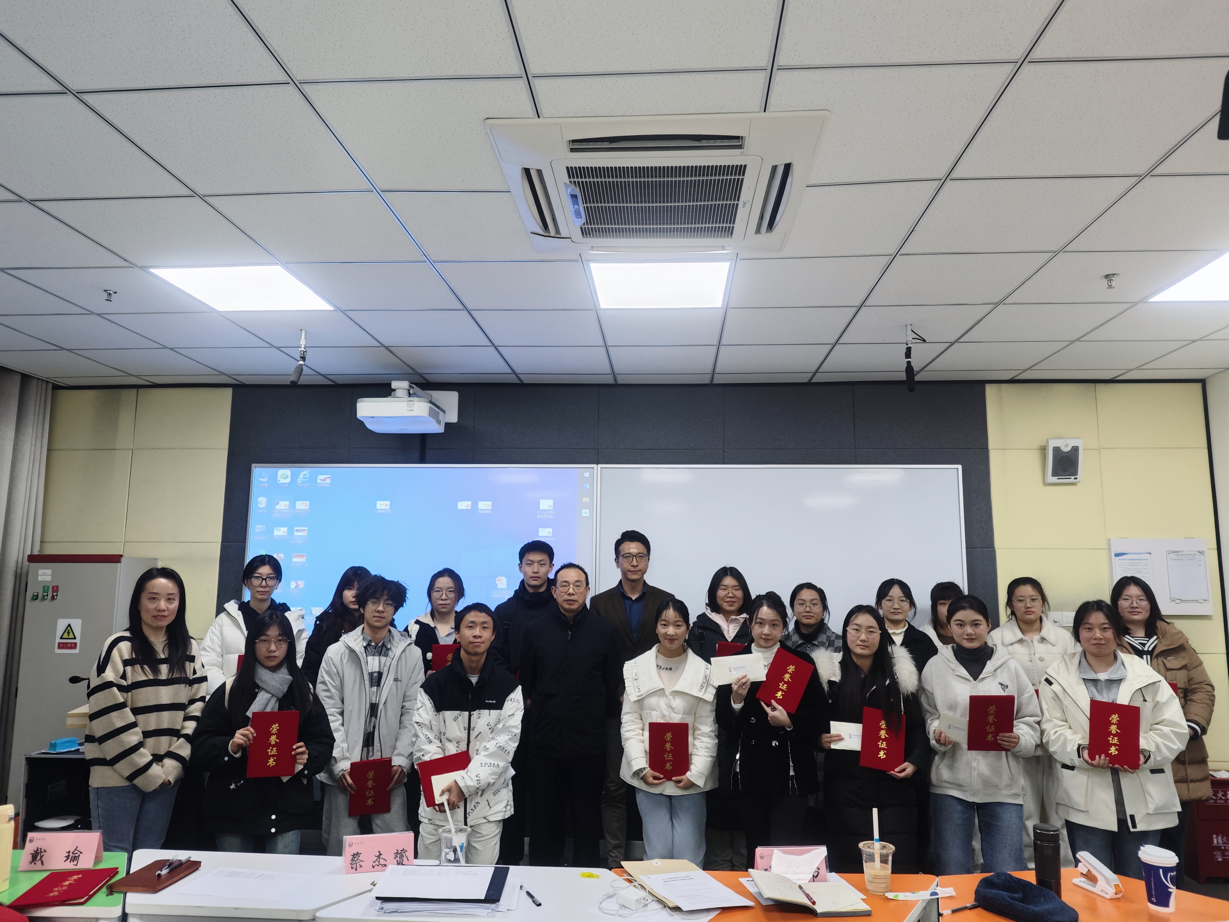 结课答辩现场,全体实验班同学自选课程主题,轮流以PPT的形式,对自己撰写的结课论文进行答辩汇报。各位老师对同学们的学习以及成长给予了高度评价,并针对答辩内容提出了专业性的建议。随后,蔡杰赟、张运书、戴瑜老师一同为学员们颁发结业证书和结业纪念品。