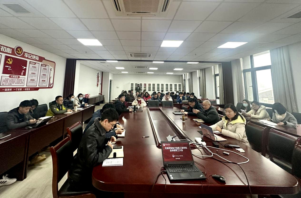 2月28日下午,电子信息工程学院在思贤楼512召开新学期教职工大会。电子信息工程学院院长郭业才、副院长王伟、党总支副书记曹琳及全体教职工参加大会。会议由郭业才主持。