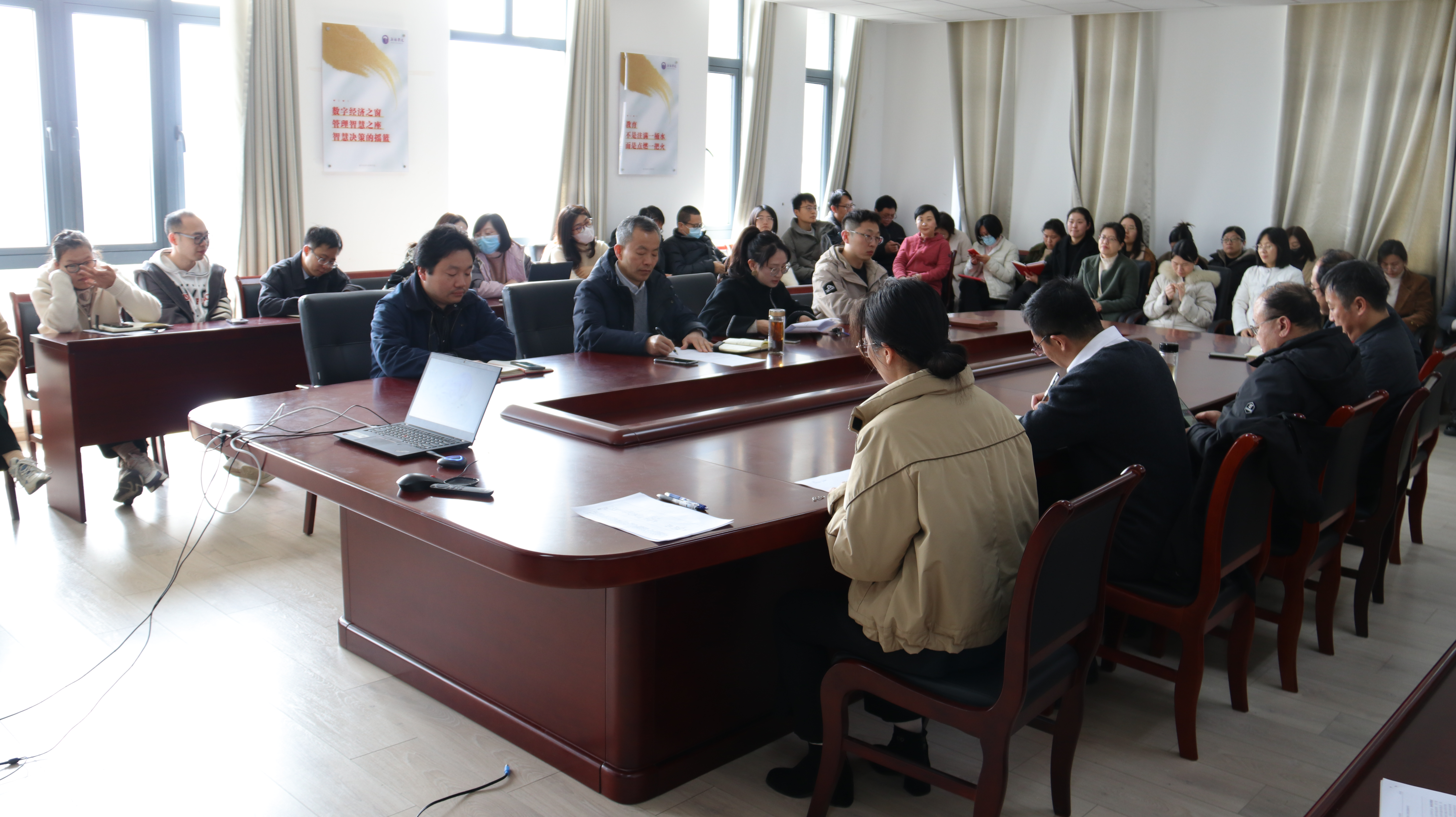 3月13日下午,数字经济与管理学院在尚美楼504会议室召开新学期全体教职工大会。数字经济与管理学院院长刘军,党总支副书记李诗雅,院长助理孙宁、刘震及全体教职工参加会议。会议由刘军主持。
