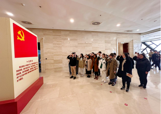 参观结束后,同志们来到五楼大厅重温入党誓词。大家面向鲜红的中国共产党党旗,高擎右拳,目光坚定,深切缅怀为国家和人民英勇献身的革命先烈。他们铿锵有力的誓言表达出传承使命、勇担重任的决心。