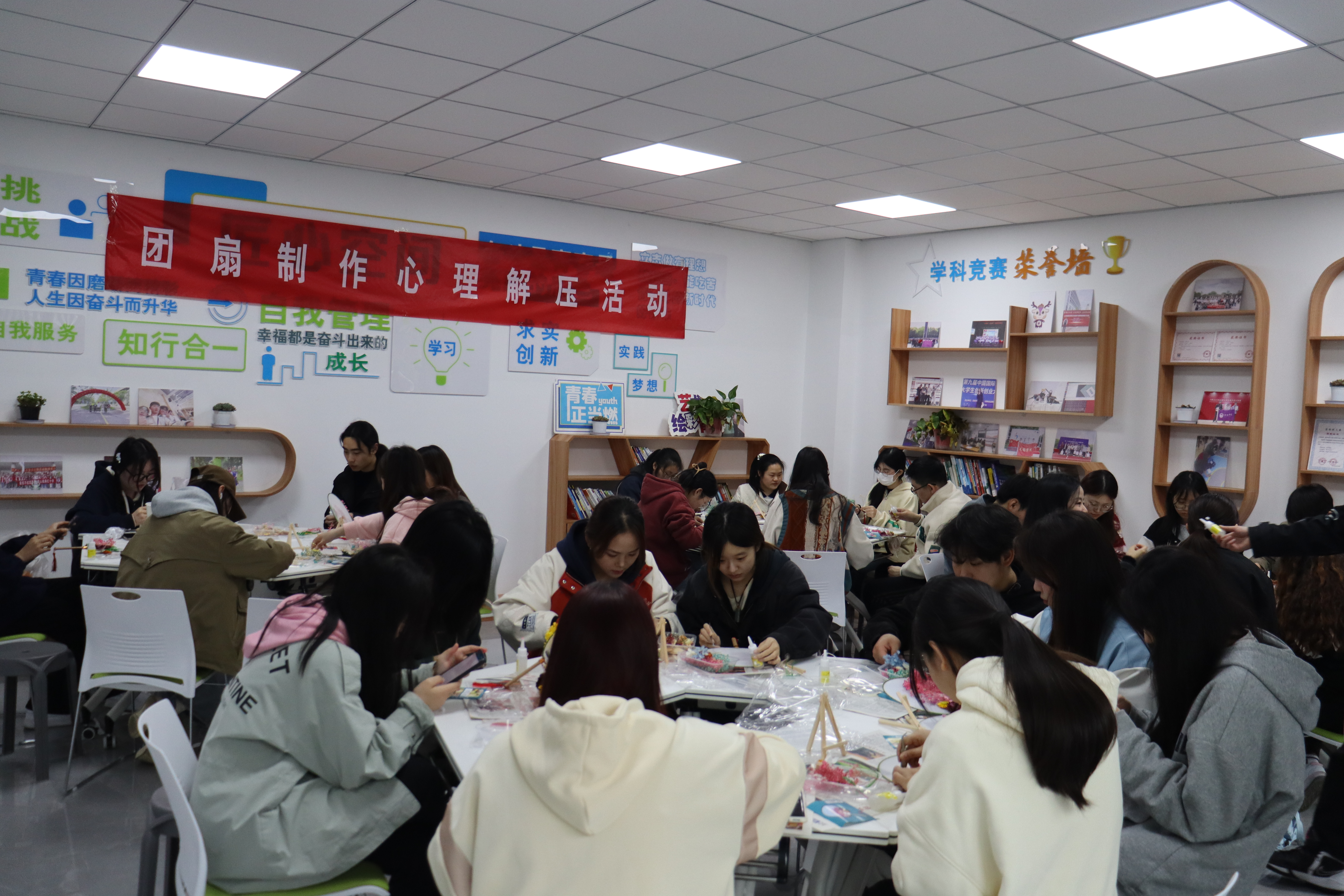 为深入贯彻落实《省教育厅关于组织开展“五育润心 沐光同行”心理健康教育活动的通知》精神,引导大学生在劳动中学思践悟,感受工匠精神,缓解心理压力,3月27日下午,学生工作处在梅园“一站式”学生社区举办团扇制作心理解压活动。
