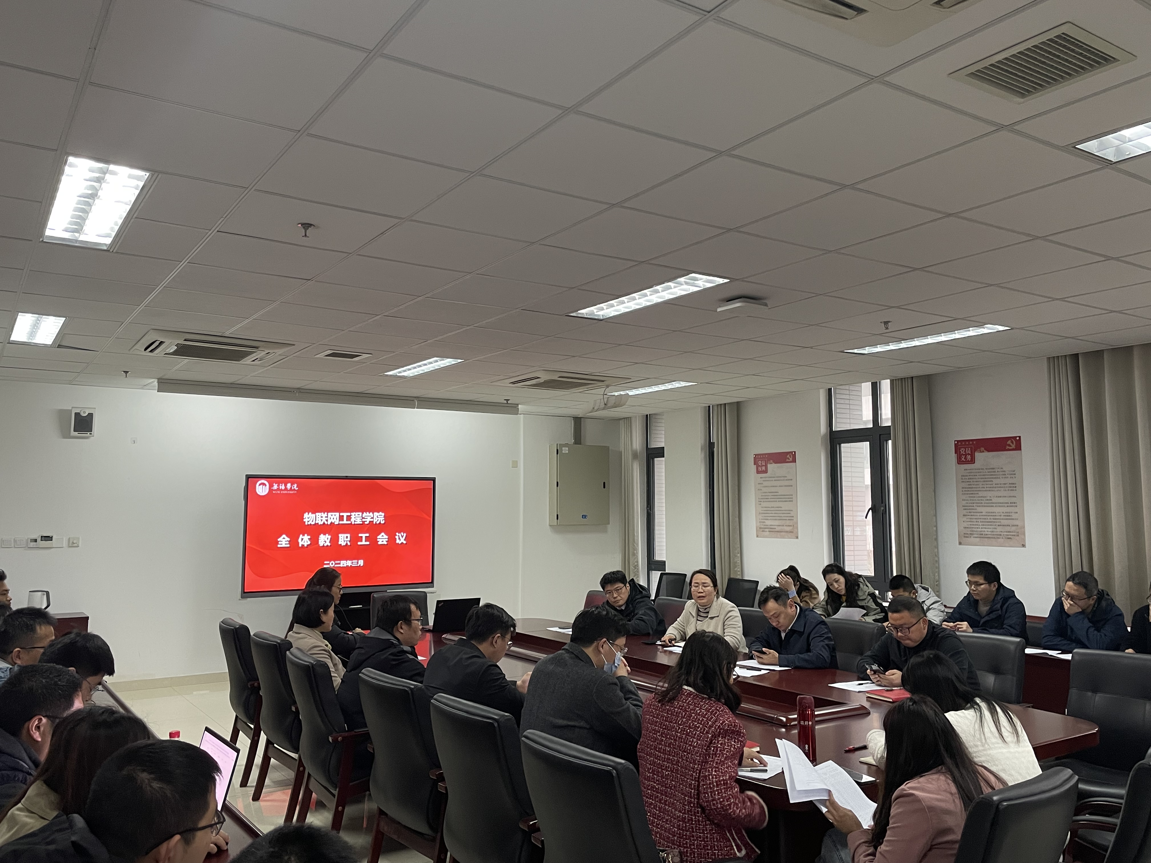 3月27日下午,物联网工程学院在思源楼305会议室召开了全体教职工大会。物联网工程学院院长王泉,党总支副书记臧文佳及全体教职工参加大会。会议由王泉主持。